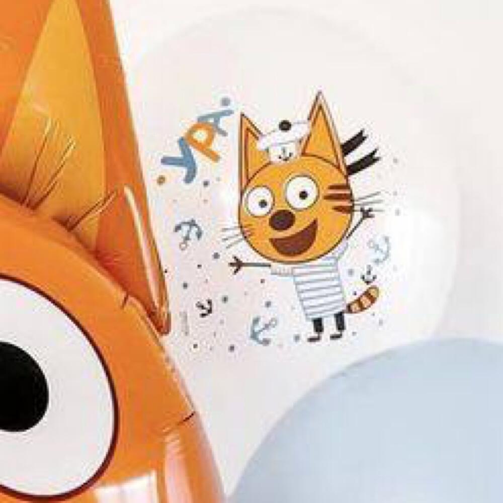 Набор состоит из фигуры Коржика (размер 85см) и фонтана из 5 шаров (3 шара «Три кота», 2 шара голубых)Котёнок и цвет композиции может быть любым😉