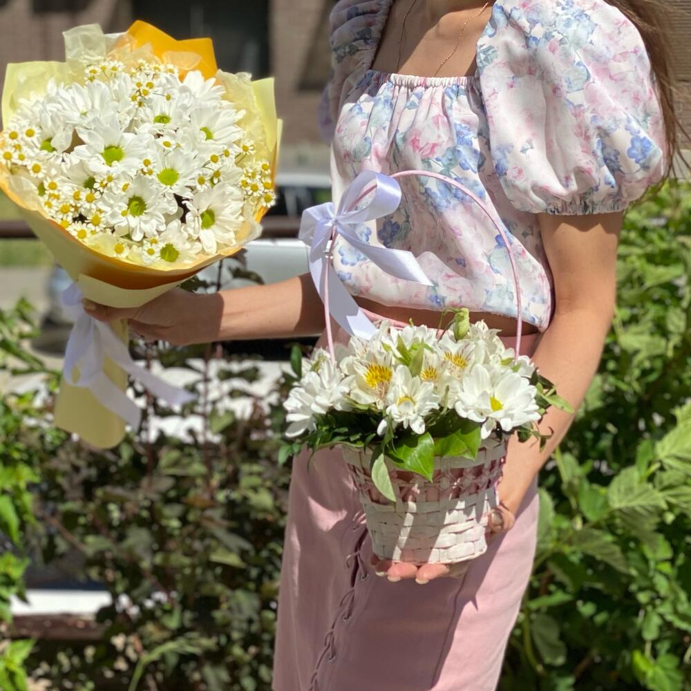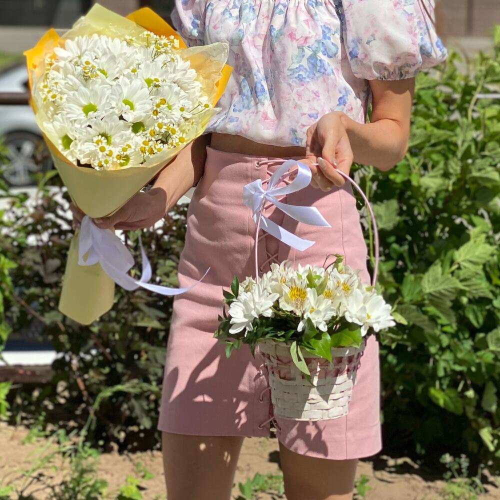 Корзиночка с ромашками и альстромериями