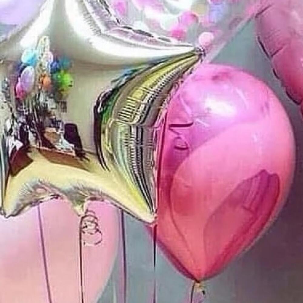 Набор состоит из большого сердца с надписью (она индивидуальна😉) и фонтана из 6 шаров:- 1 звезда – 2 шара агат- 1 шар с конфетти- 2 шара пастельЦвет композиции может быть любым