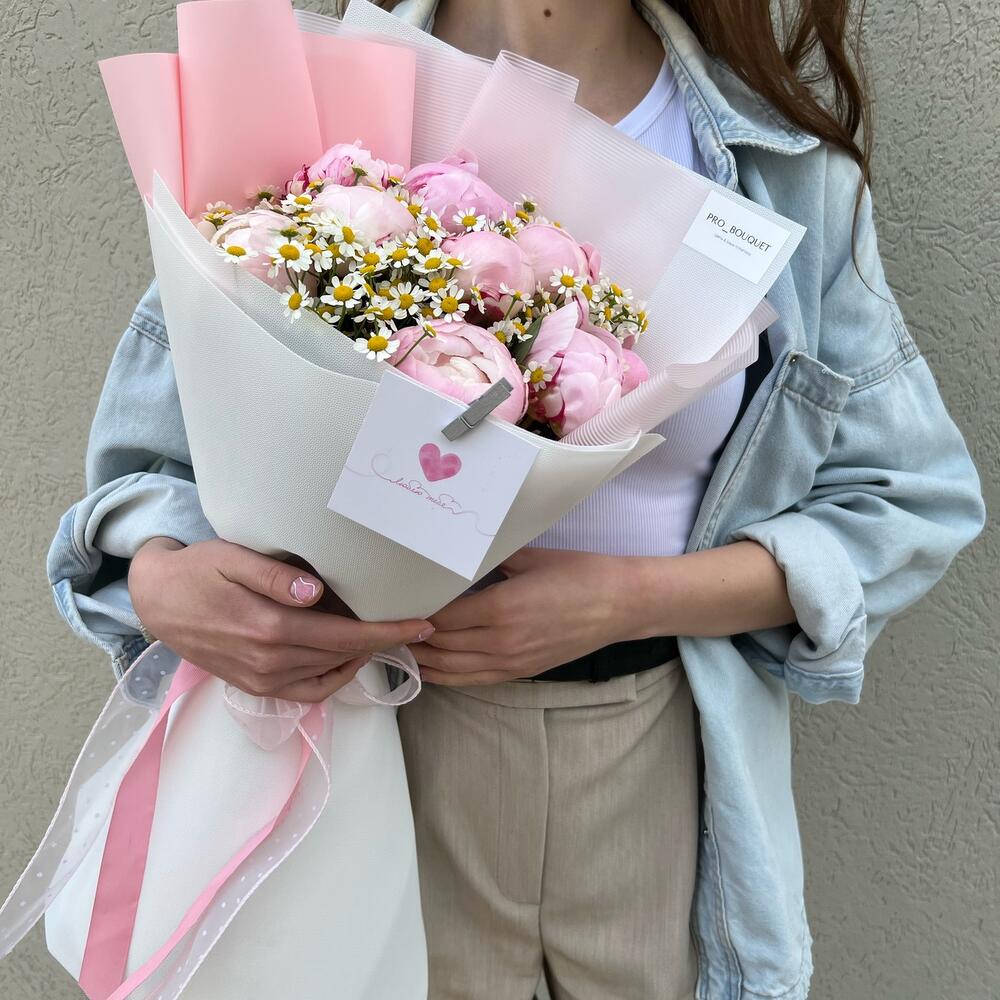 Нежный летний букет с ромашками и любимыми пионами 🩷