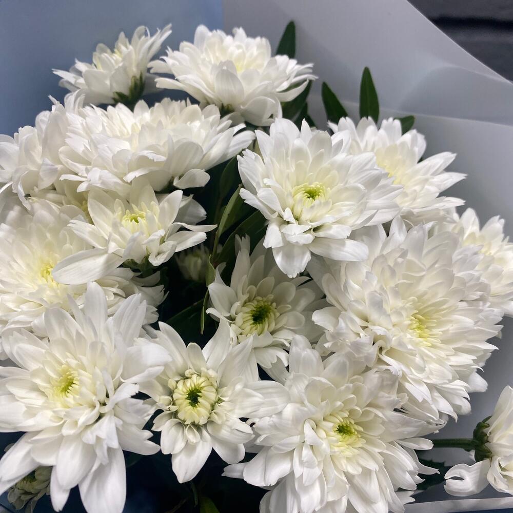 Хризантема кустовая - 3 шт. Фисташка - 2 шт. Упаковка дизайнерская - 1 шт.