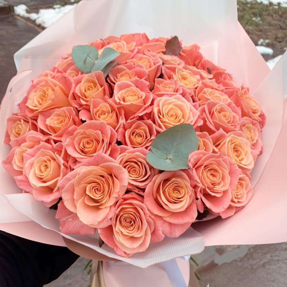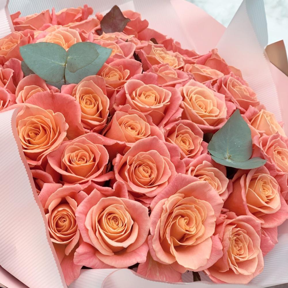Нежнейшие розы в персиково-розовой цветовой гамме! Такие нежные!!!Очень ароматные! Интересная современная упаковка!Прекрасная возможность порадовать близкого человека!!!