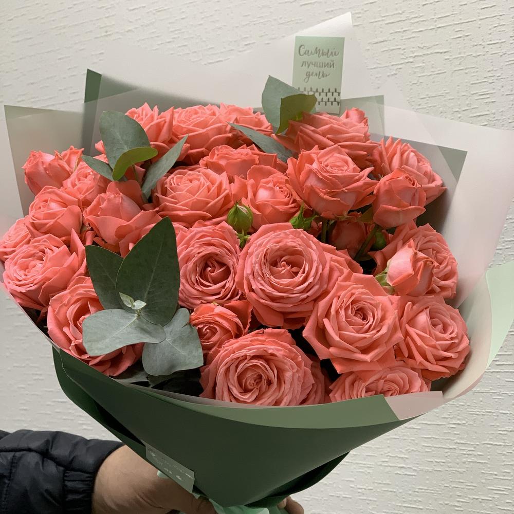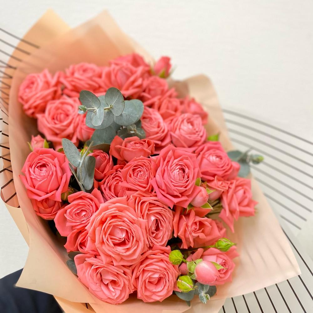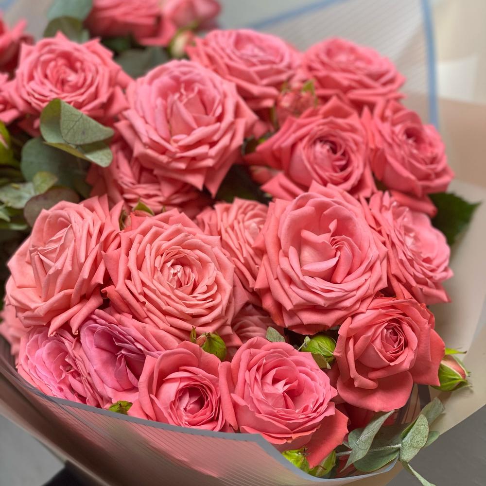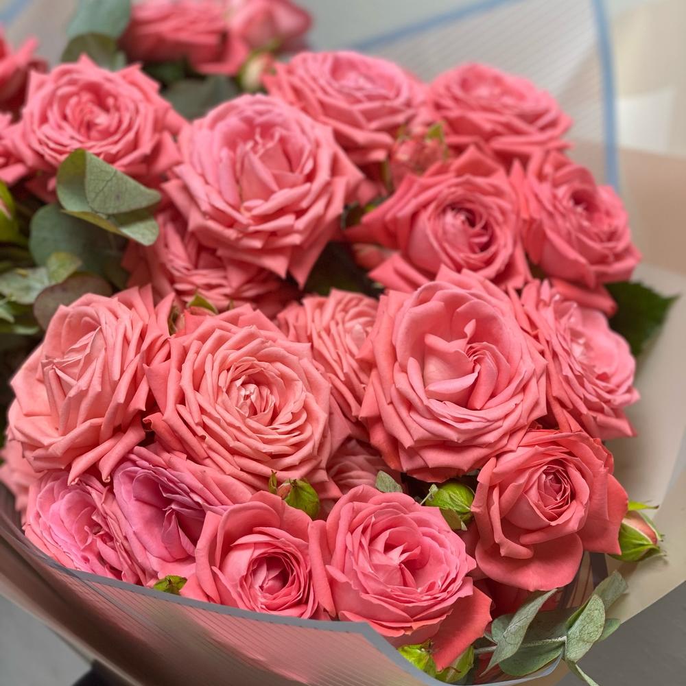 Роза кустовая - 9 шт. Упаковка - 1 шт. Эвкалипт Baby Blue - 1 шт.