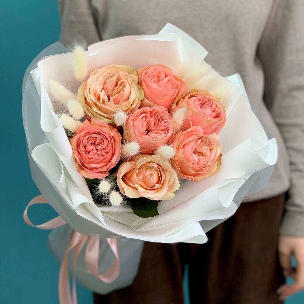 Оформление - 1 шт. Роза кахала - 7 шт. Лагурус (сухоцвет) - 15 шт.