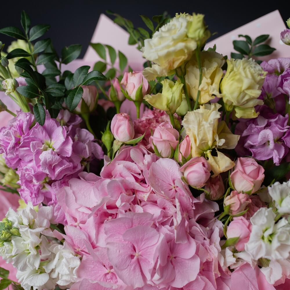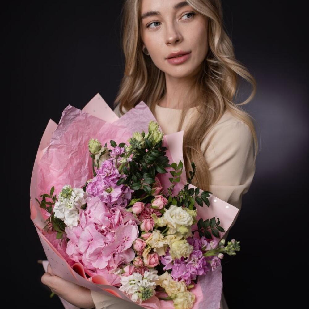Нежный букет с гортензией и маттиолой - Цветочный вальс