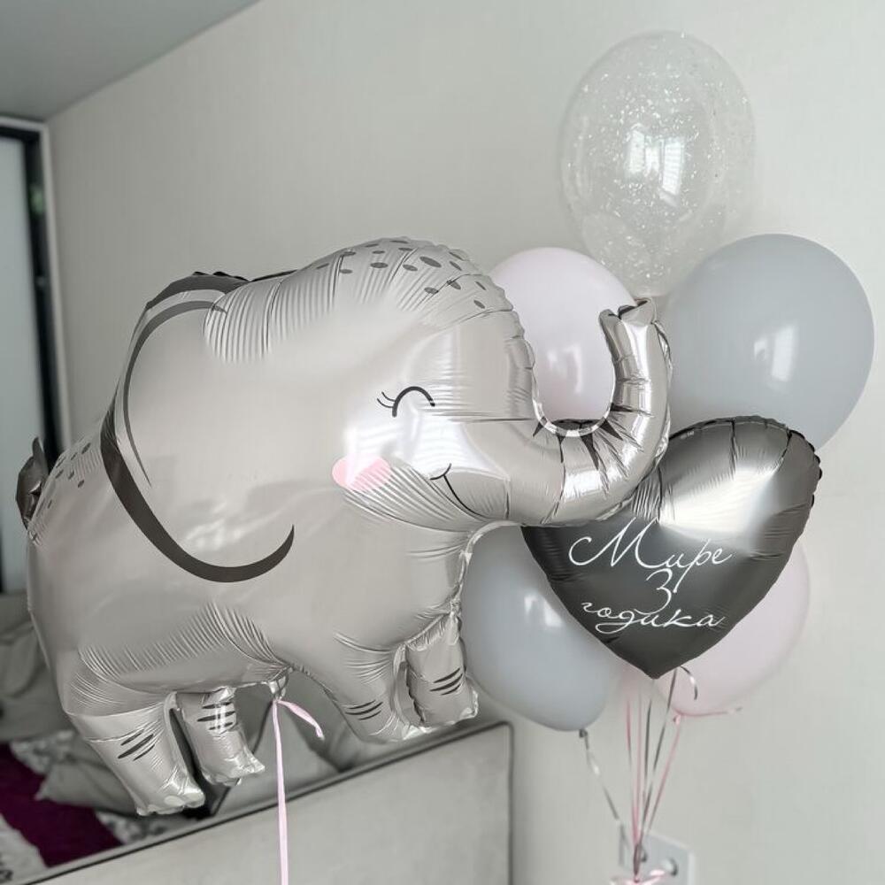 Набор состоит из слоника (84см) и фонтана из 7 шаров:- сердце с Вашей надписью- 2 шара с конфетти – 2 шара нежно-розовые- 2 шара нежно-серыеЦвет композиции и надпись могут быть любыми☺️