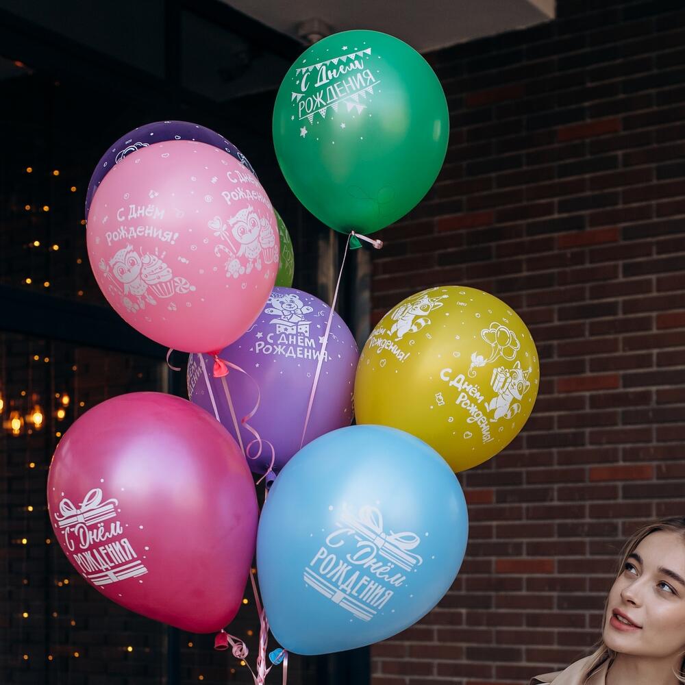 Охапка шаров ” С Днём рождения”Цвета шариков можно изменить