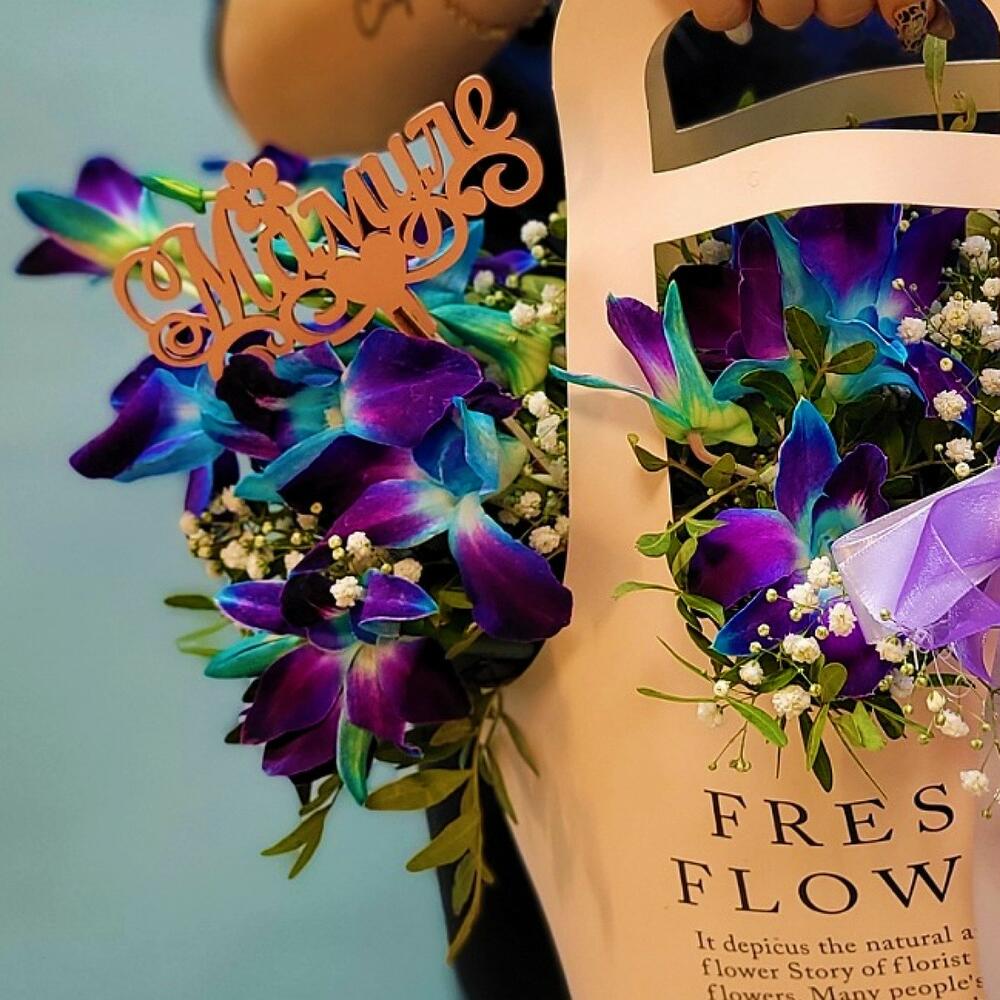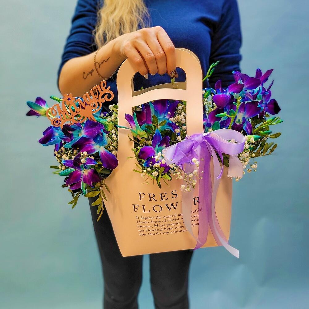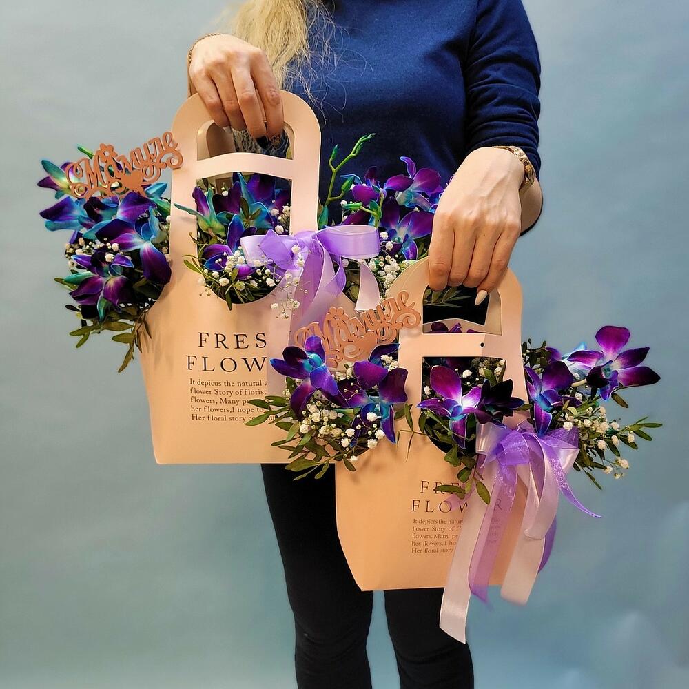 Гипсофила – 2 шт. Лента – 2 шт. Оазис – 1 шт. Фисташка – 4 шт. Сумка – 1 шт. Дендробиум – 4 шт. Топпер – 1 шт.