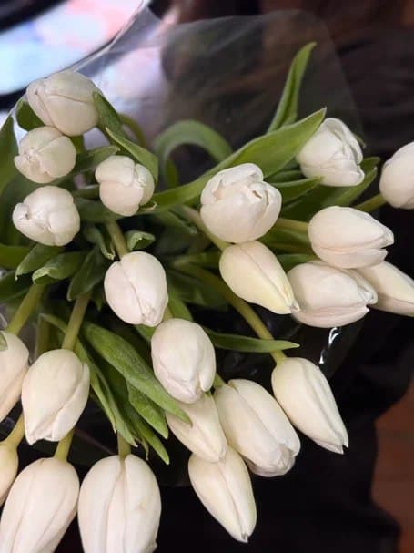 Пачка белых тюльпанов 25 шт без сборки в Москве