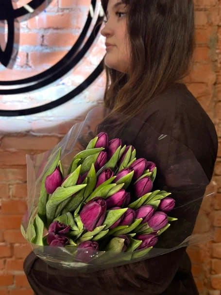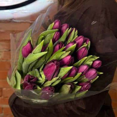 Пачка фиолетовых тюльпанов 25 шт без сборки в Москве