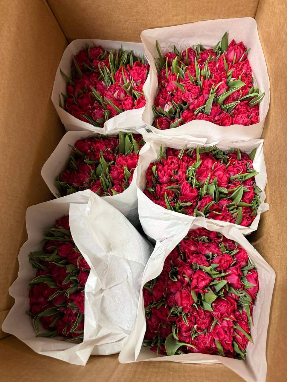 Пачка красных махровых тюльпанов 50 шт без сборки в Москве