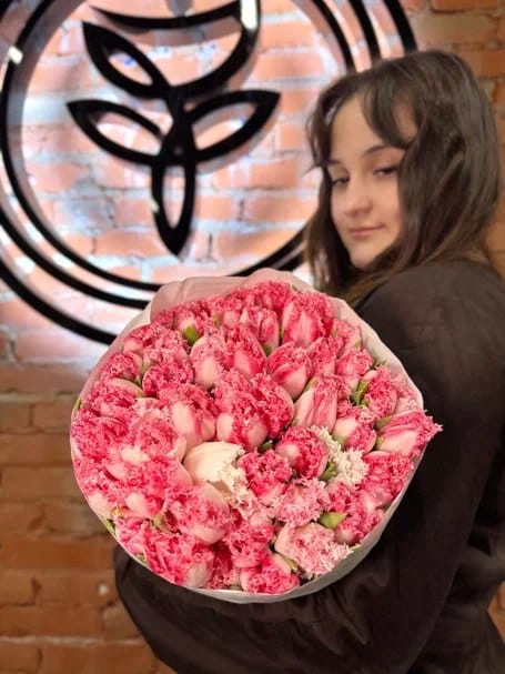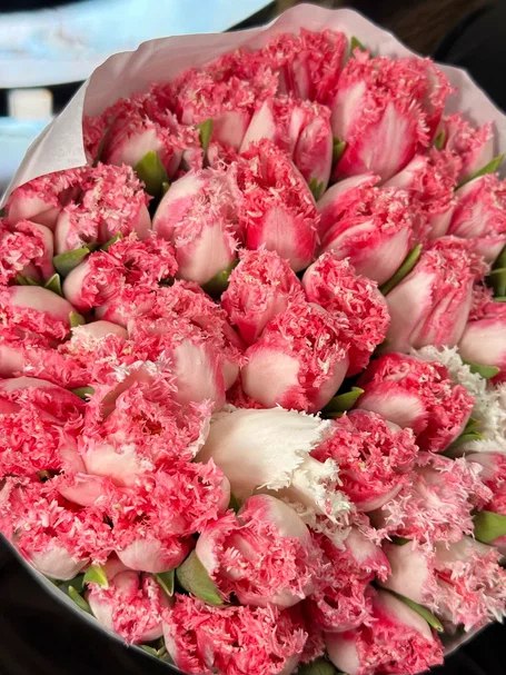 Пачка розовых махровых тюльпанов 50 шт без сборки в Москве