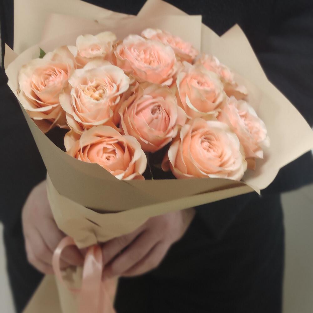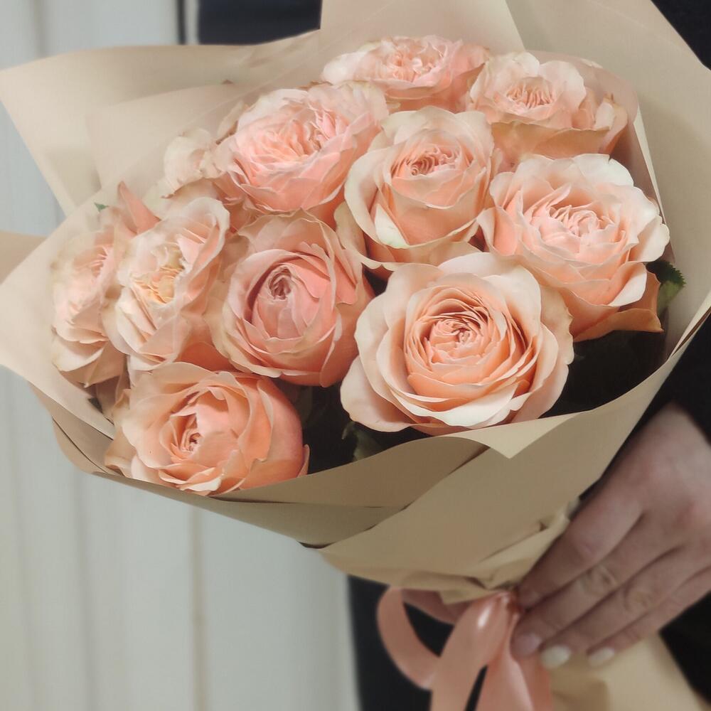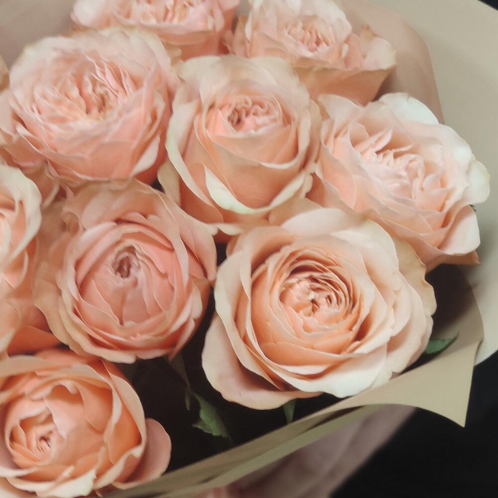 Персиковые пионовидные розы 11 шт