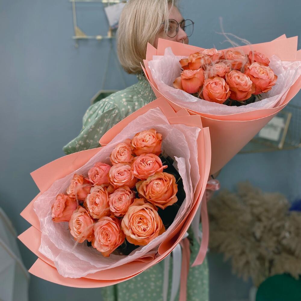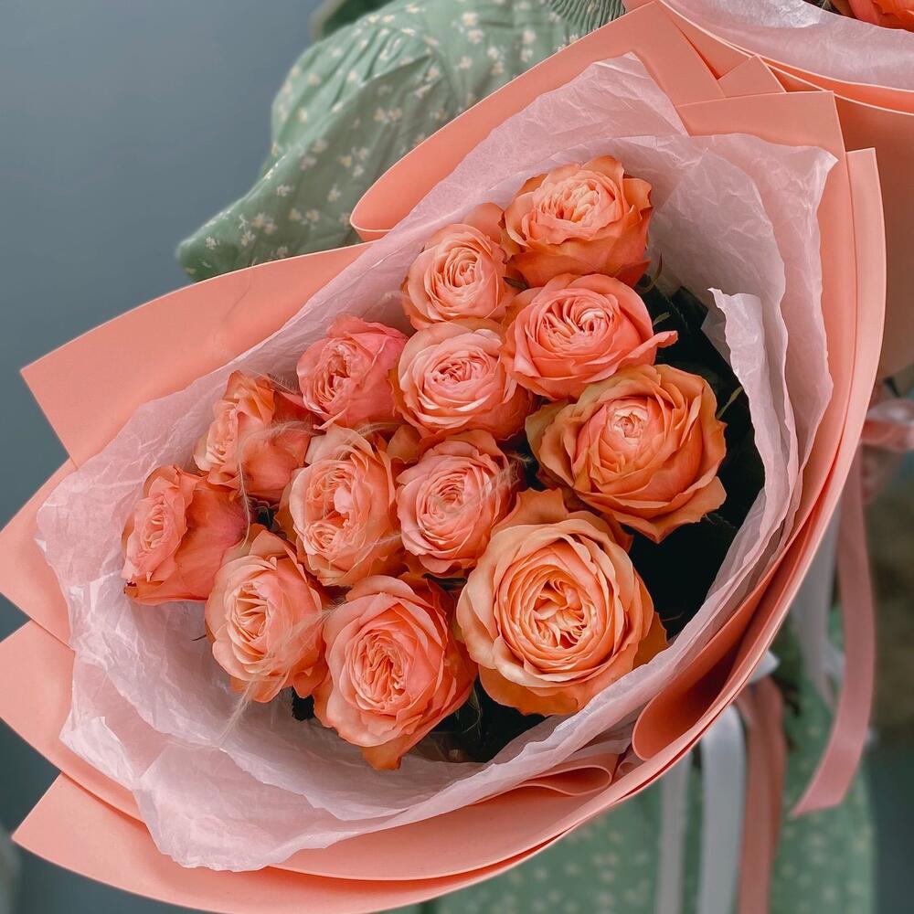 Невероятная пионовидная Роза сорта Кахала.Цветок очень красивого цвета и подойдёт к любому событию! Букет в стильном оформлении с добавлением ковыля