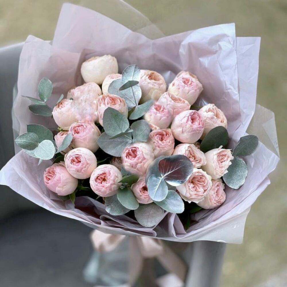 Эвкалипт – 3 шт. Оформление – 1 шт. роза мэнсфилд парк – 5 шт.