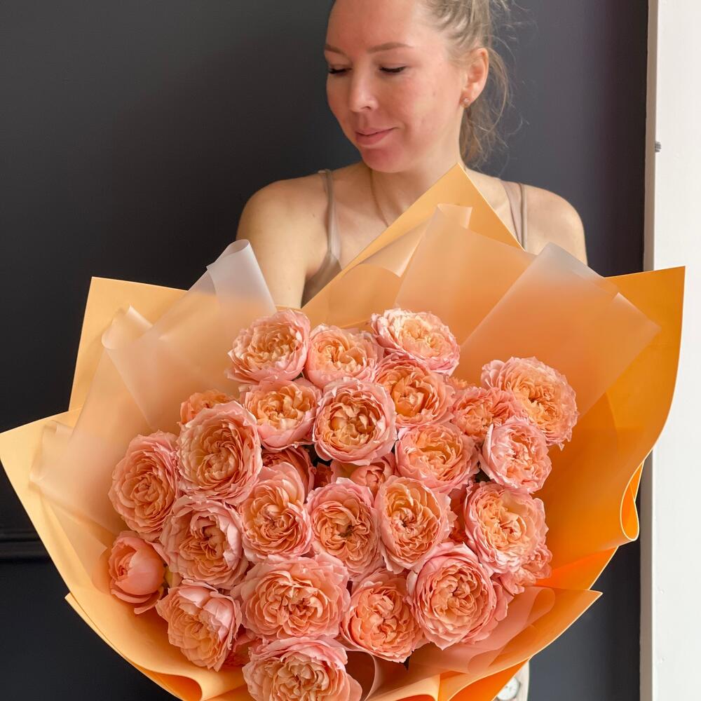 Упаковка дизайнерская - 1 шт. Пионовидная кустовая роза - 9 шт.
