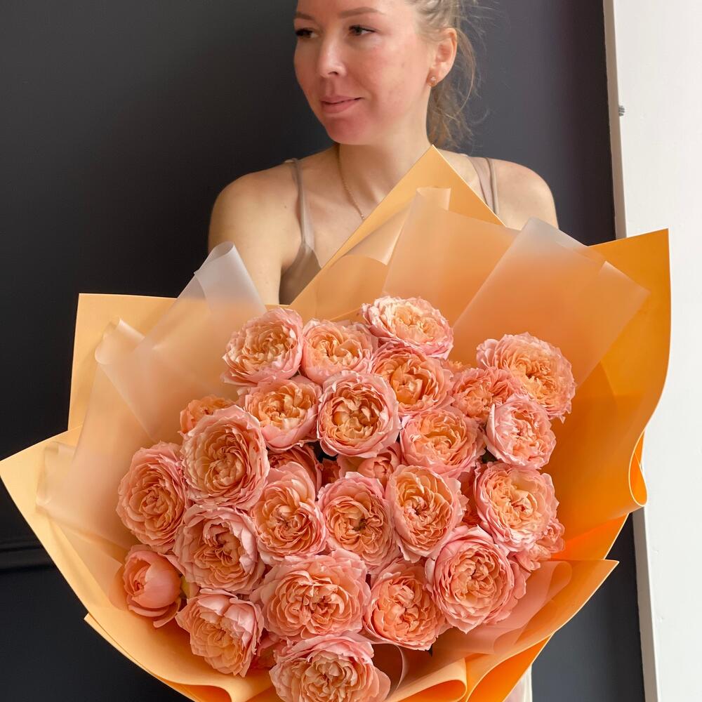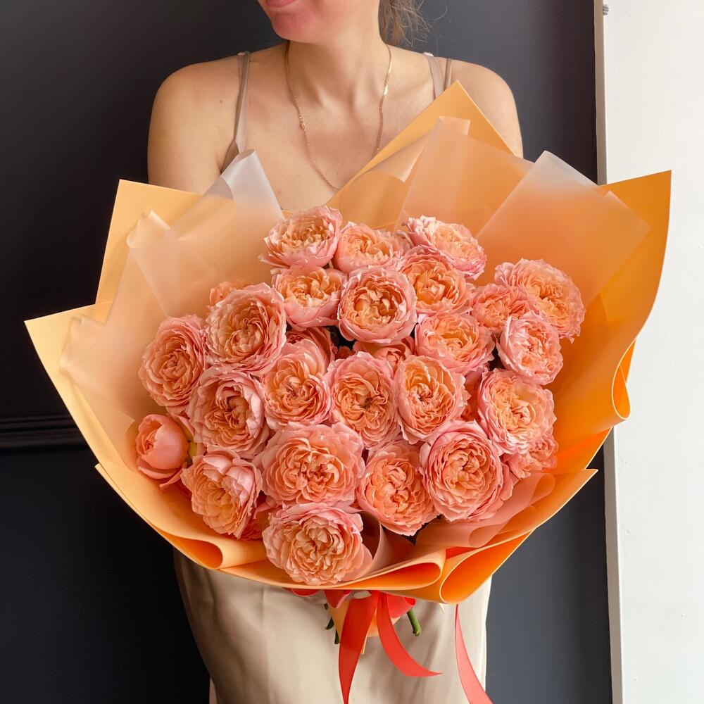 Упаковка дизайнерская – 1 шт. Пионовидная кустовая роза – 9 шт.