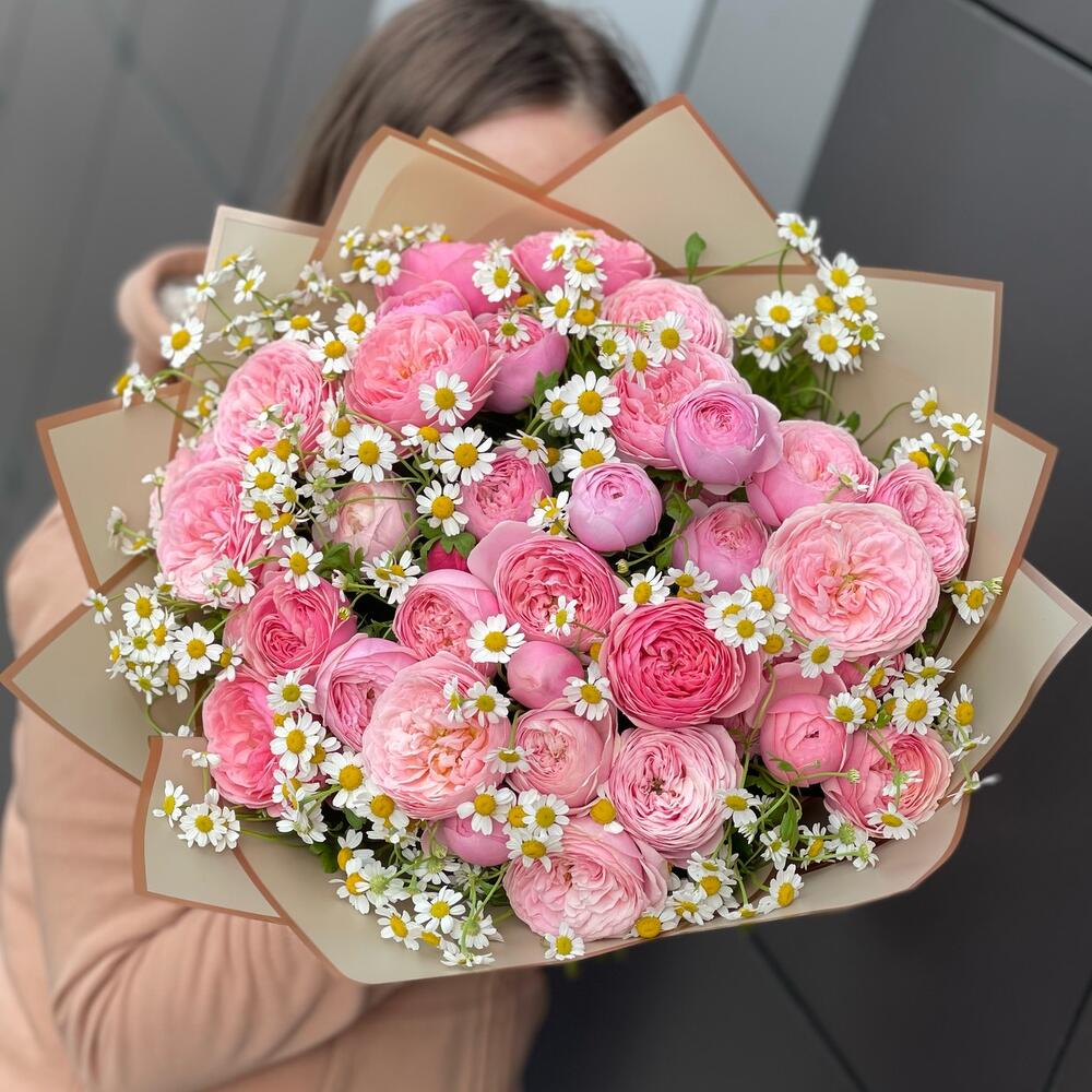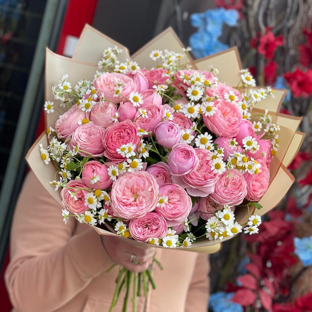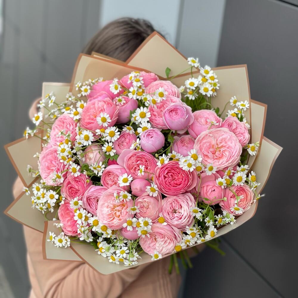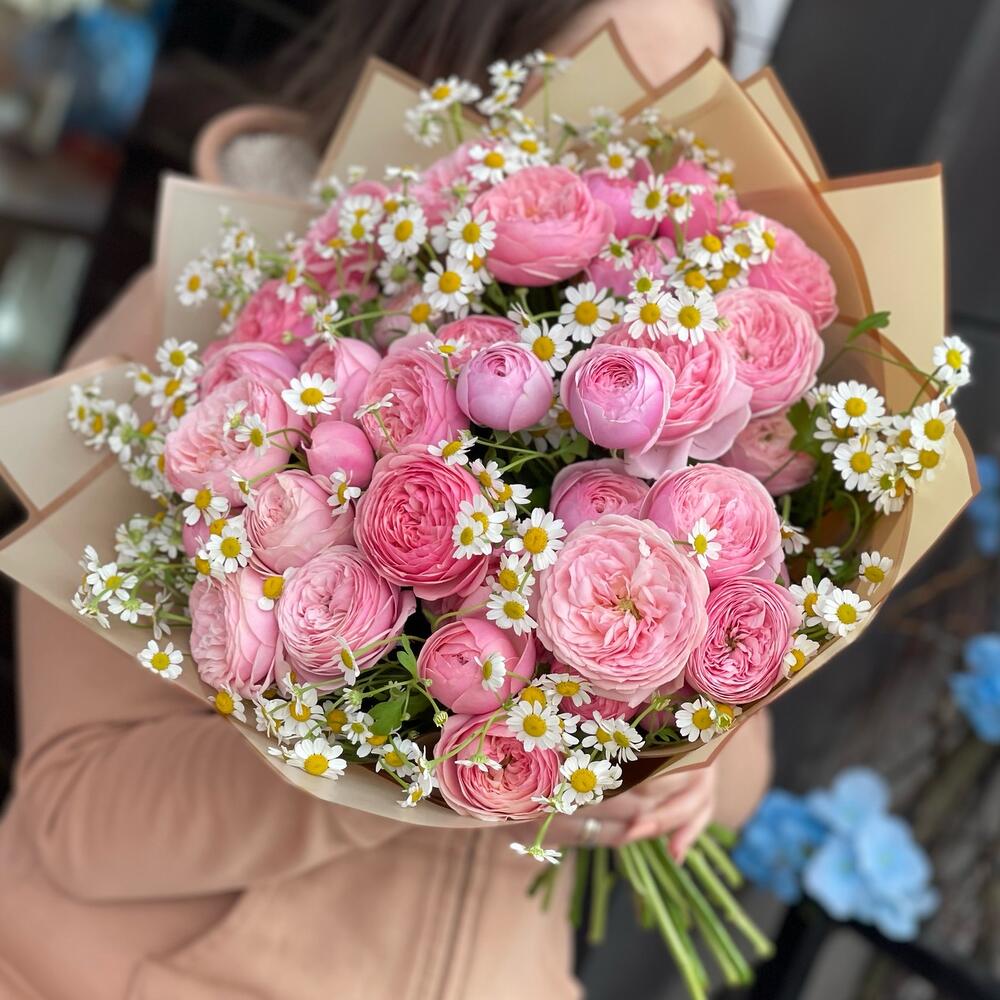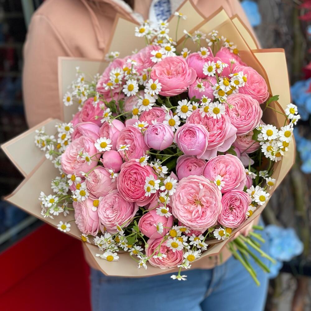 Летний , ароматный букет из пионовидных роз с ромашками 😍Используем только качественные и свежие цветы 👍Доставляем вовремя 😏