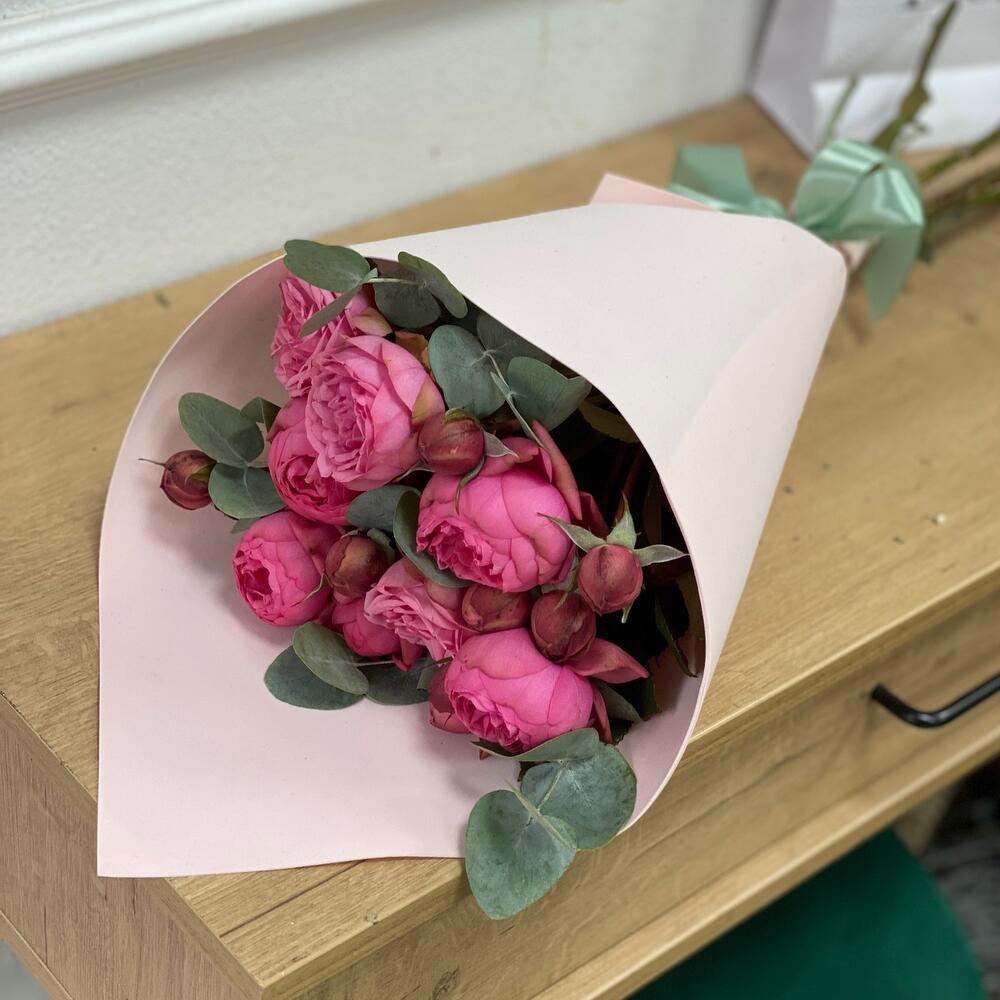 Эвкалипт – 4 шт. Роза пионовидная кустовая – 5 шт. Фоамиран (упаковка) – 1 шт.