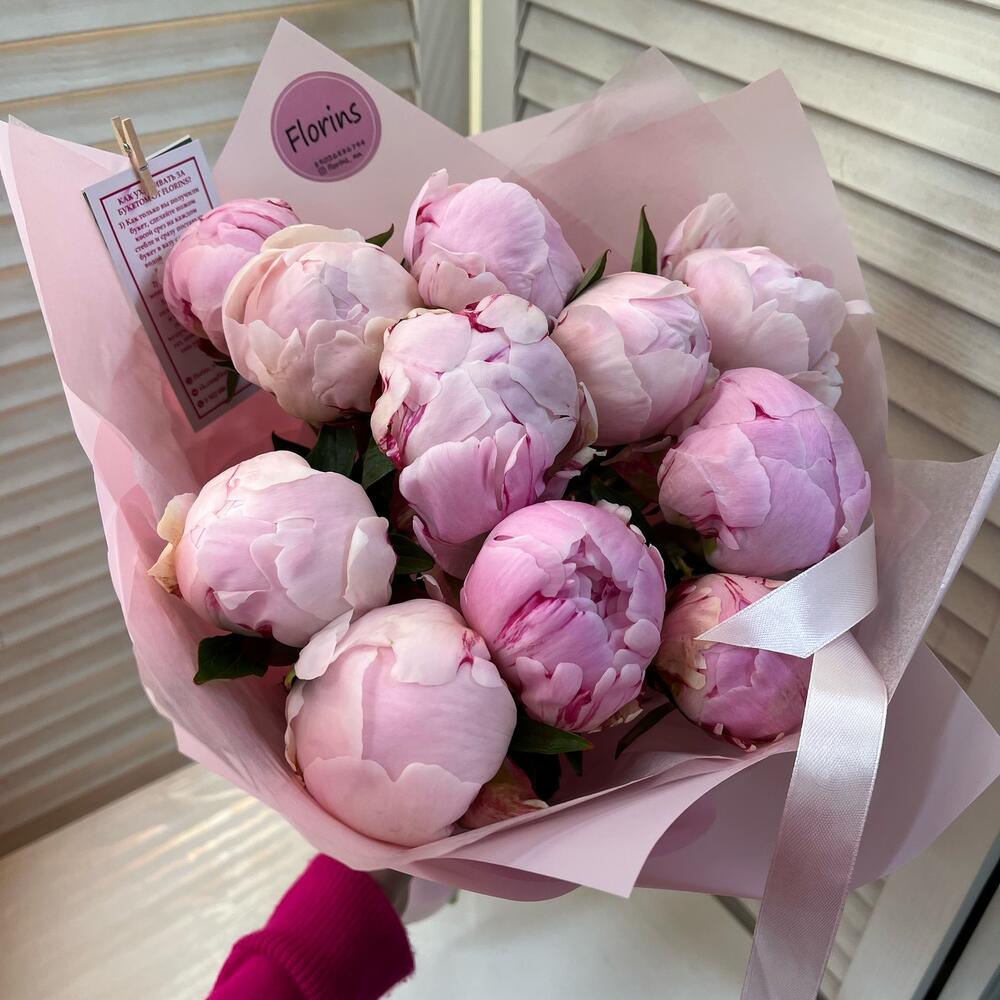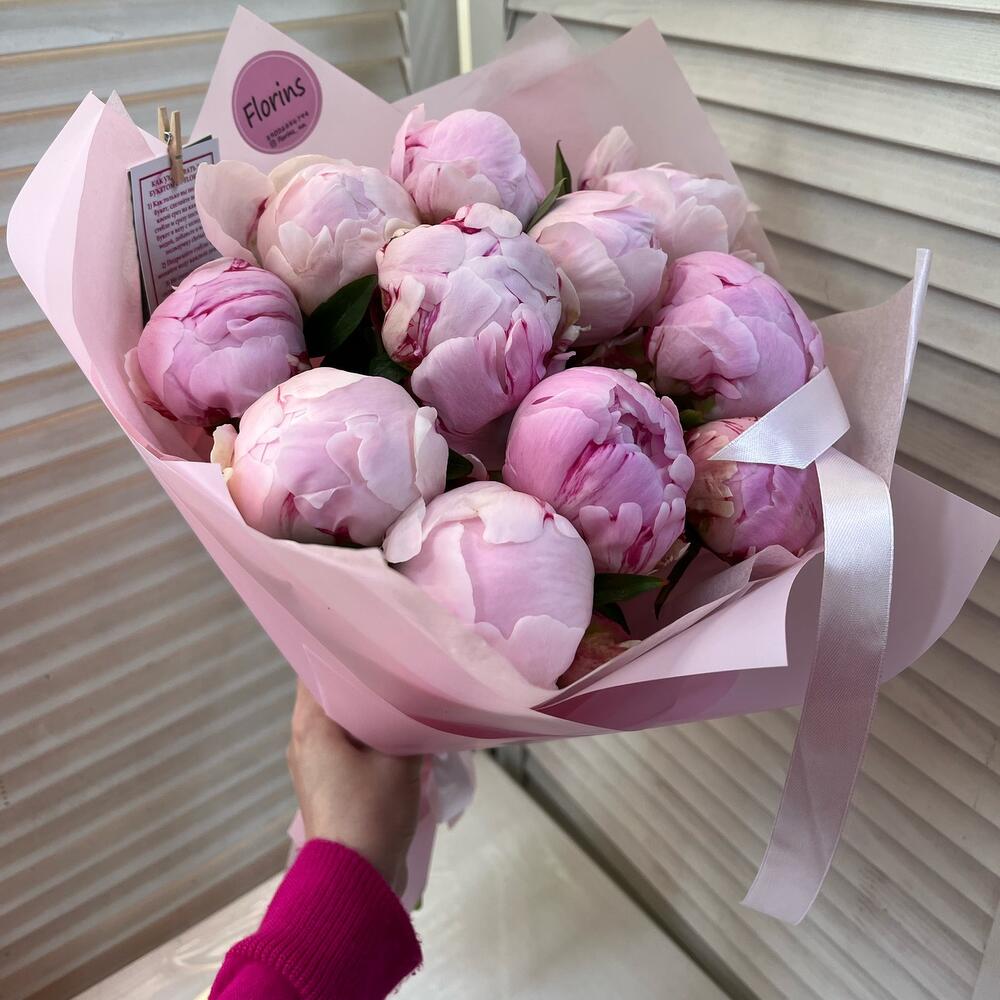 Нежные пионы Сара Бернар. О них мечтает каждая девушка 🥰К букету прикладываем рекомендацию по уходу и кризал для продления жизни букета🌿