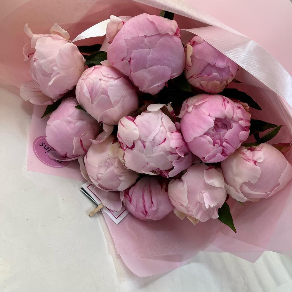 Упаковка – 2 шт. Лента атласная – 2 шт. пионы сара бернар – 11 шт.