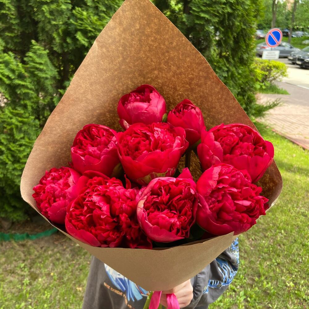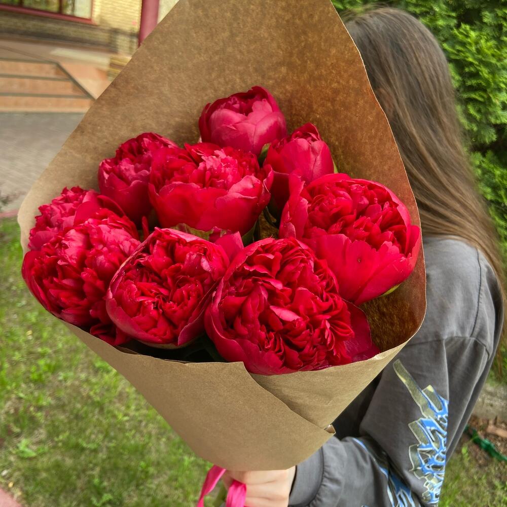 Пионы 9 шт в крафте