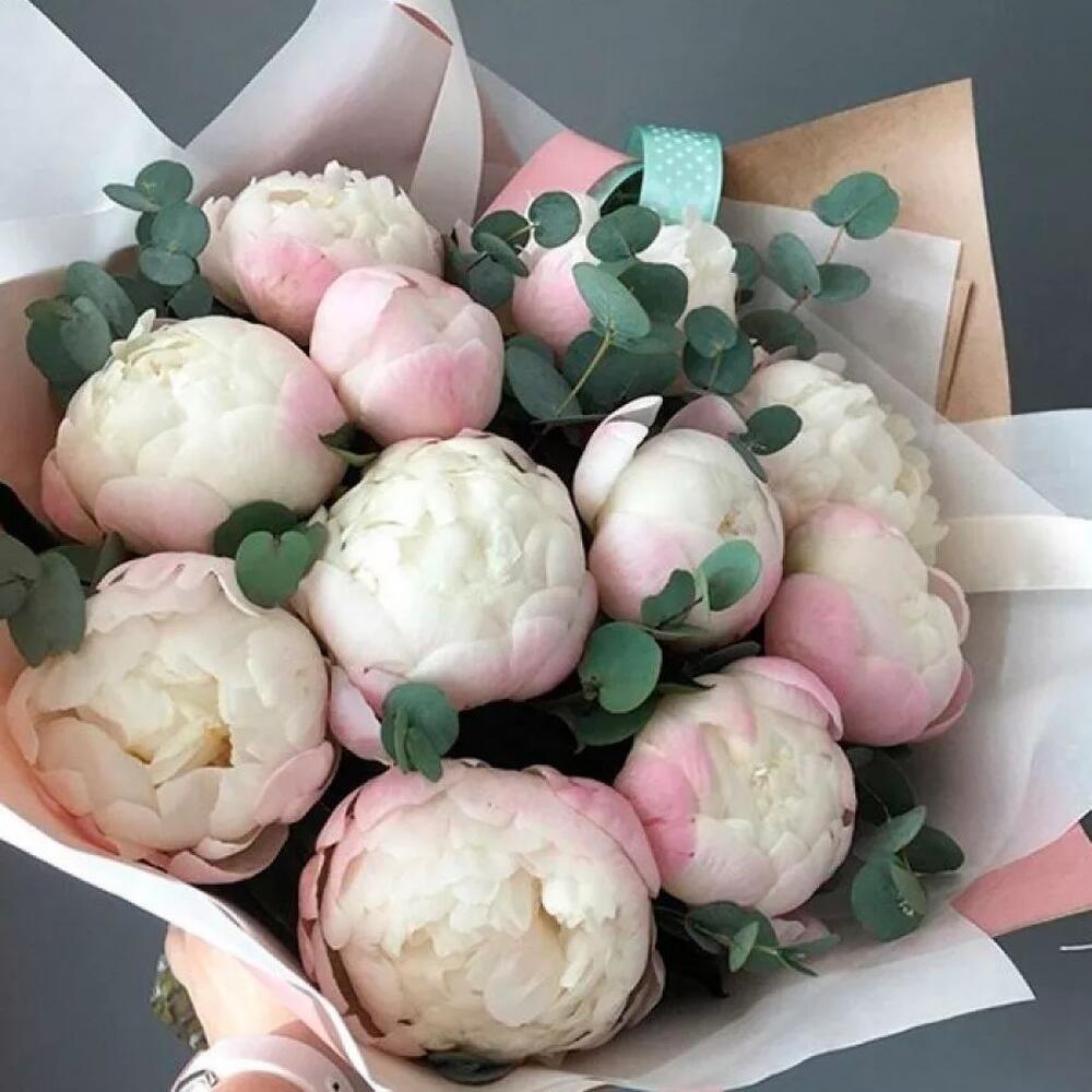 Эвкалипт – 3 шт. Оформление – 1 шт. пион гардения голландия – 11 шт.