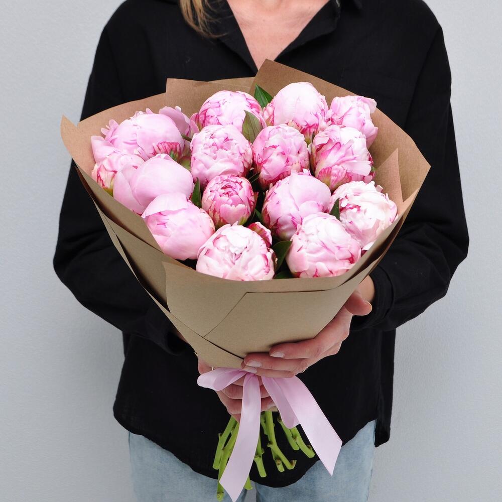 Букет из 15 ароматных розовых пионов Сара Бернар, обернутых в крафтовую бумагу, подарит вашему получателю ощущение нежности и романтичный настрой.Эти цветы имеют нежный розовый оттенок с легким ароматом весенней свежести.Букет будет прекрасным подарком для любого случая – от дня рождения до романтического свидания. Крафтовая бумага придает букету особый шарм и добавляет ему индивидуальности. Такой букет будет долго радовать получателя своей красотой и ароматом.