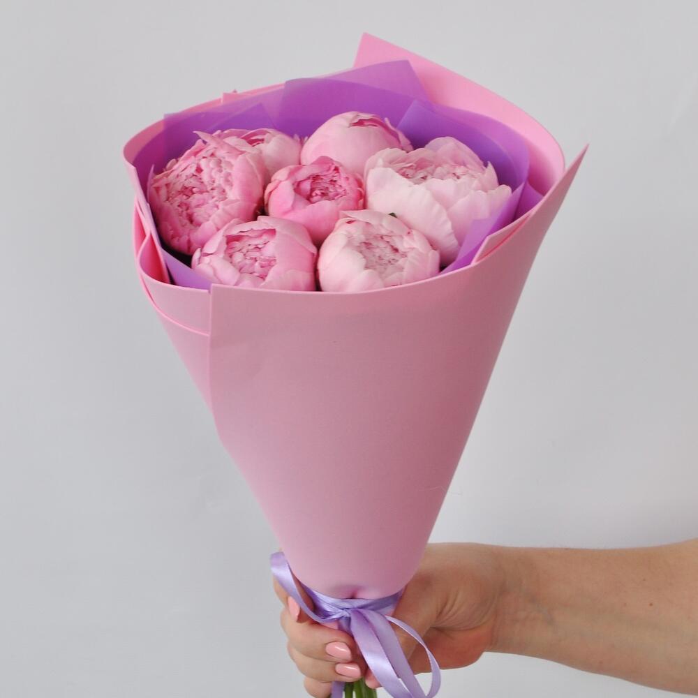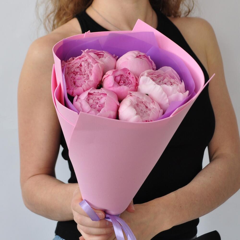 Пион розовый - 7 шт. Оформление матовая пленка - 1 шт.