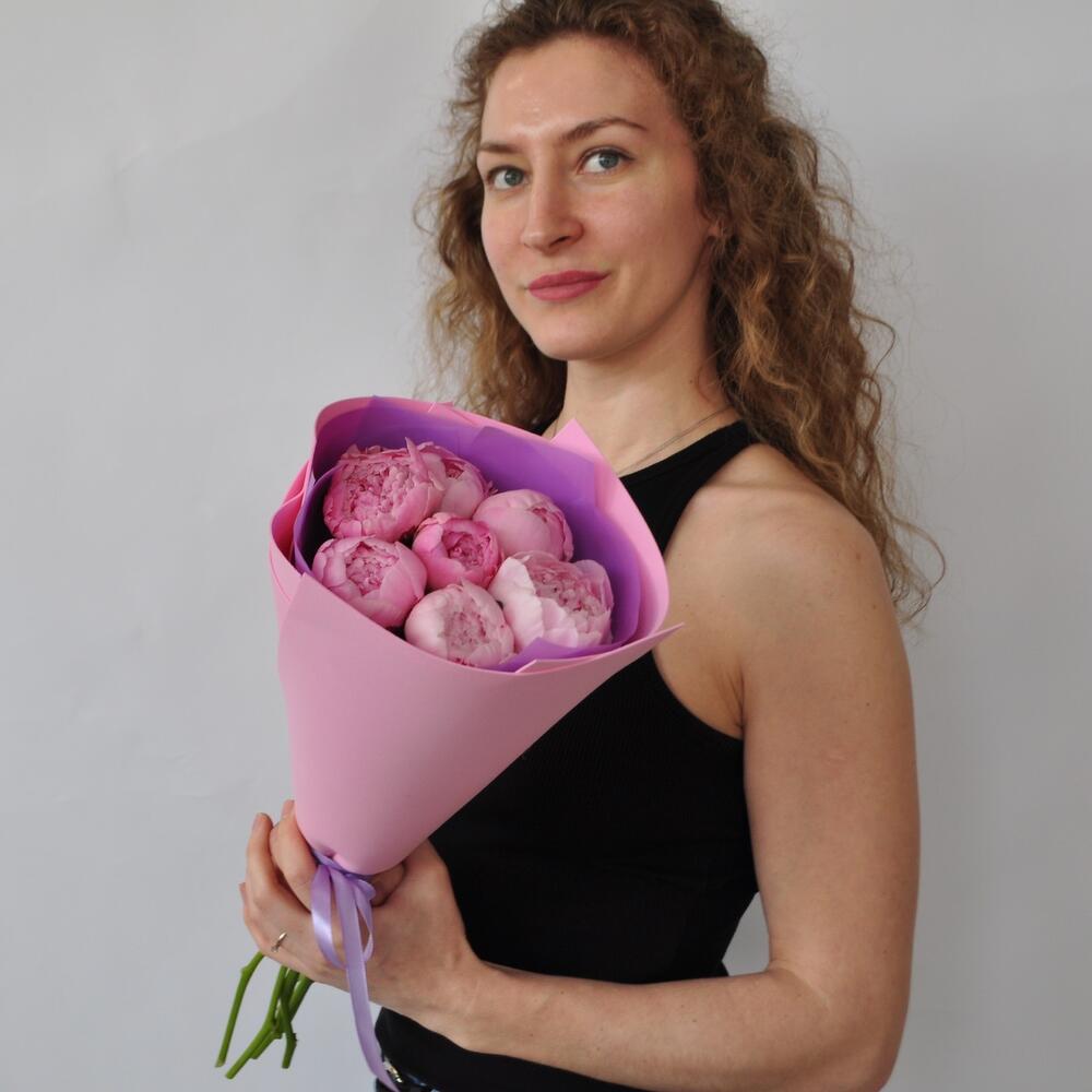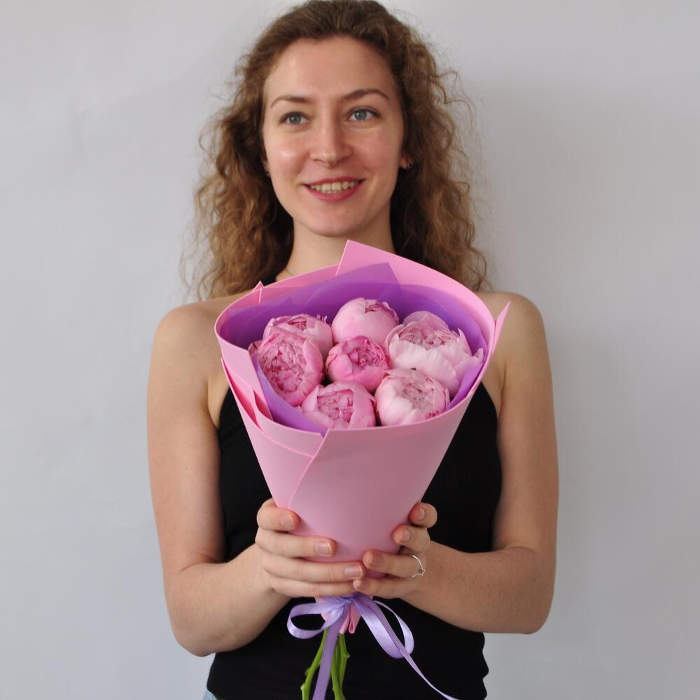 Пион розовый – 7 шт. Оформление матовая пленка – 1 шт.