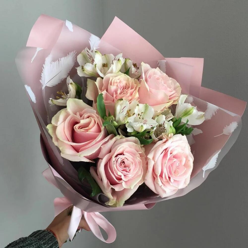 Альстромерия – 2 шт. Роза Эквадор – 5 шт. Оформление – 1 шт.