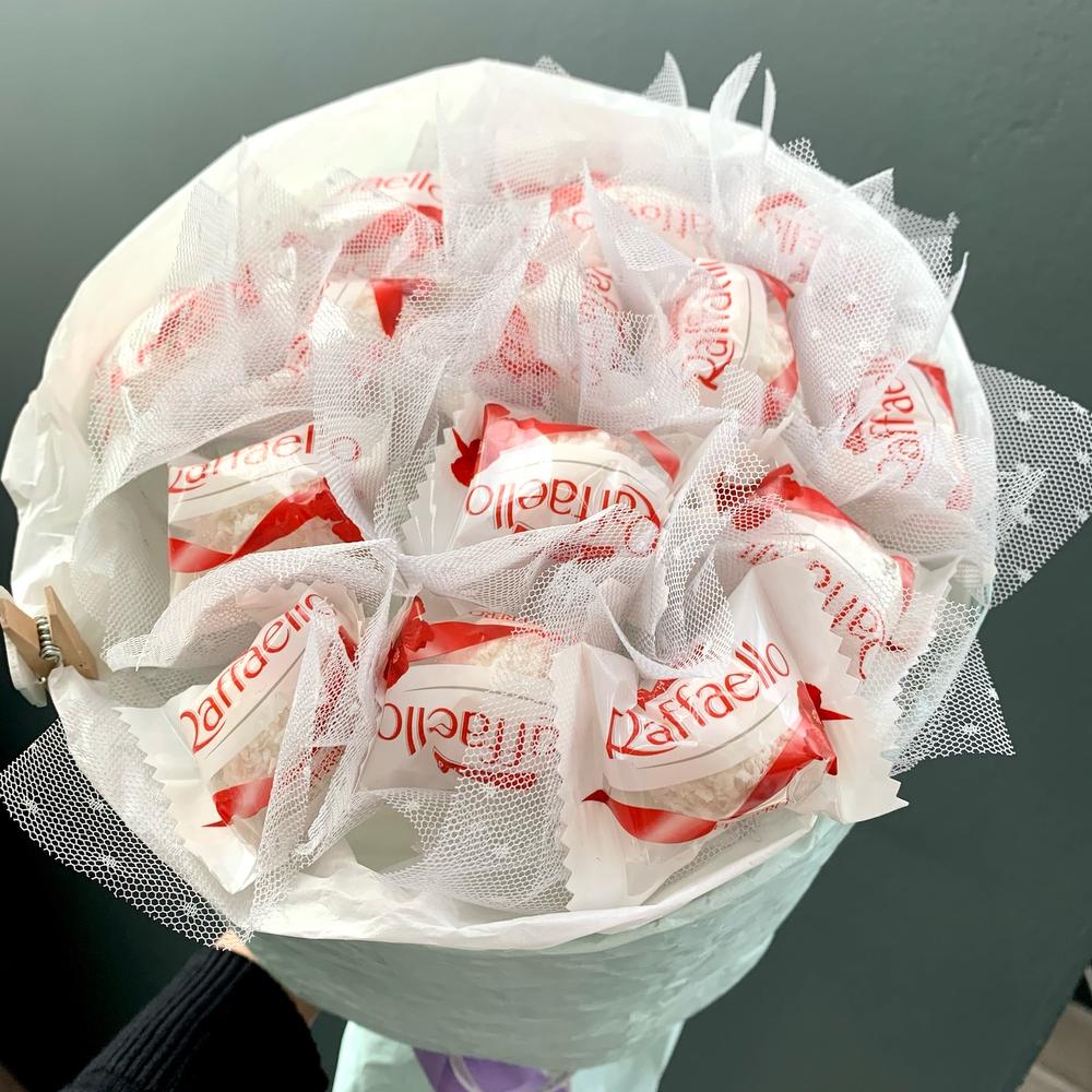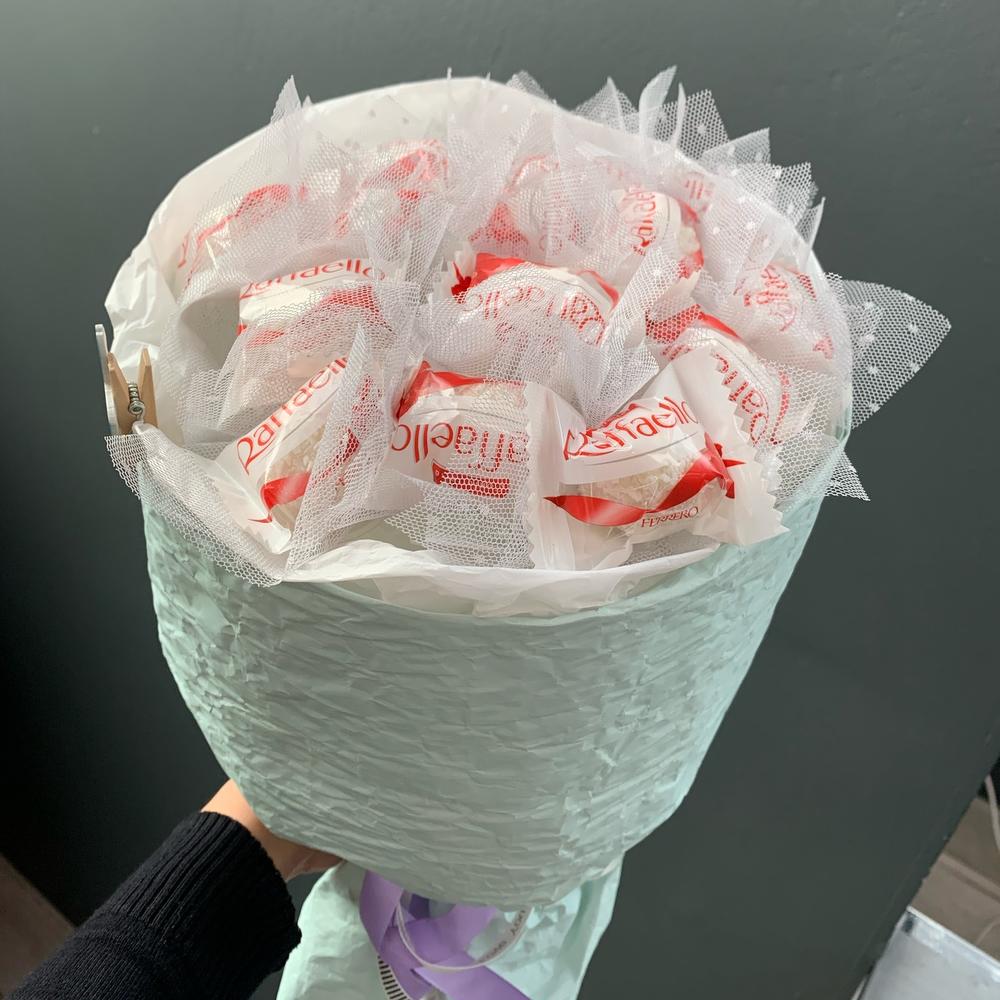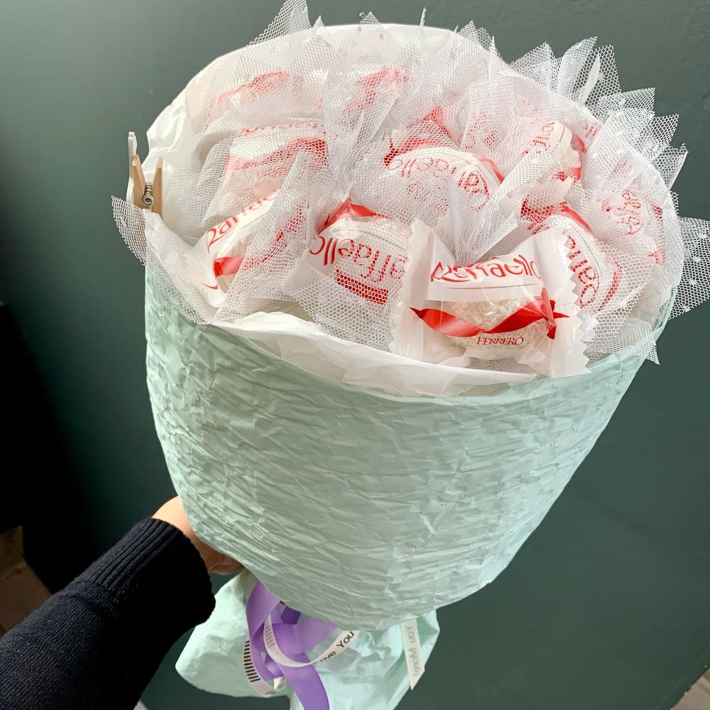 Лента атласная - 2 шт. Эколюкс - 2 шт. Прищепка декор - 1 шт. Бумага тишью - 1 шт. рафаело - 15 шт.