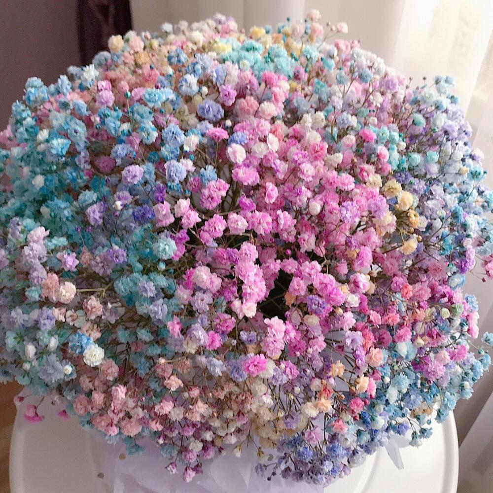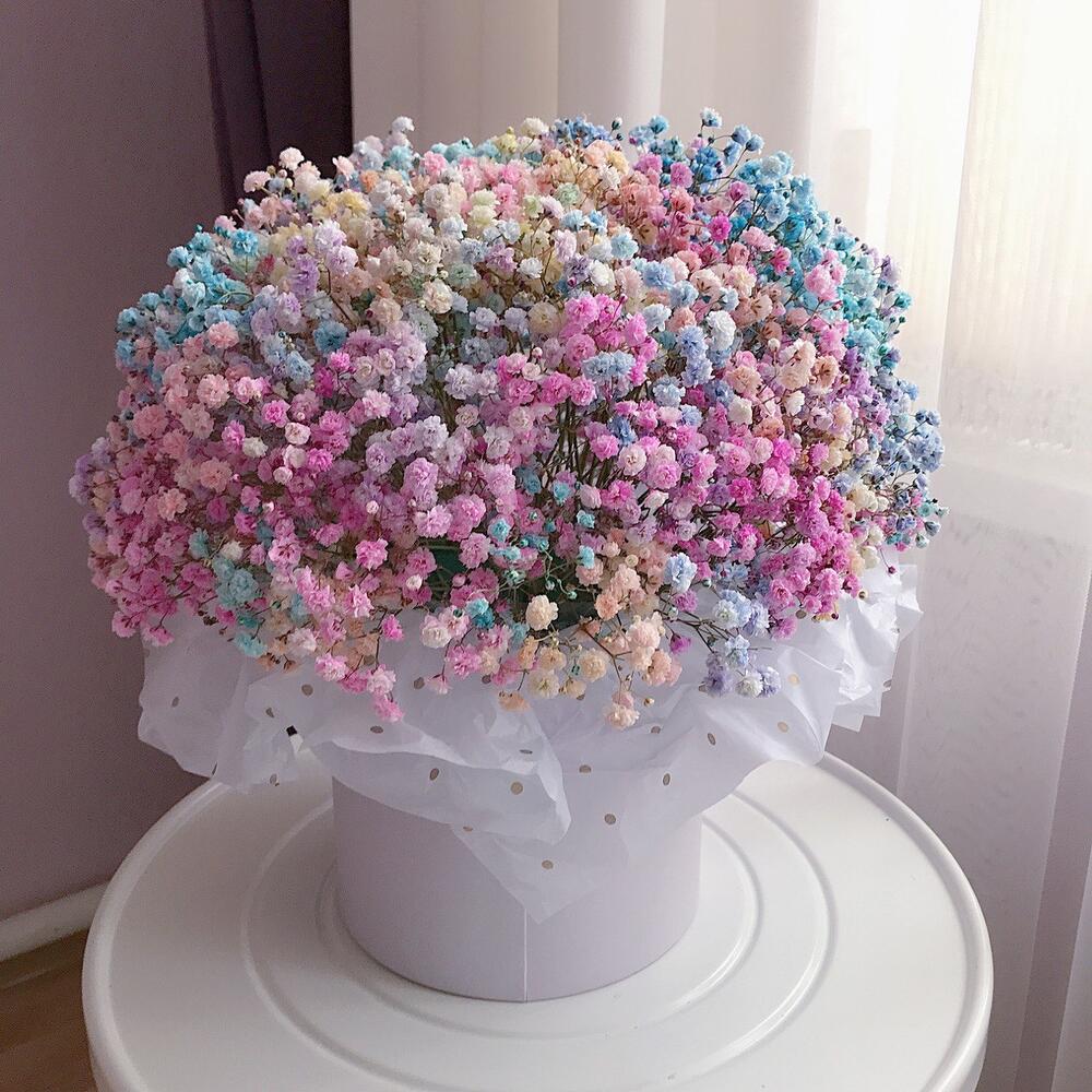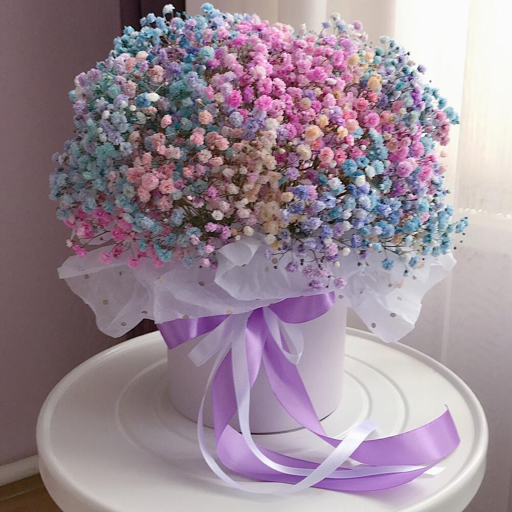 Разноцветная гипсофила в картонном цилиндре