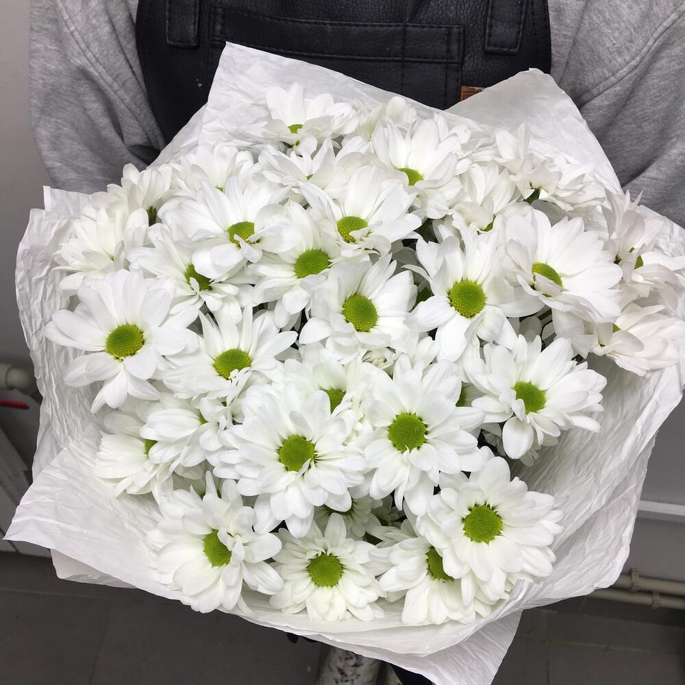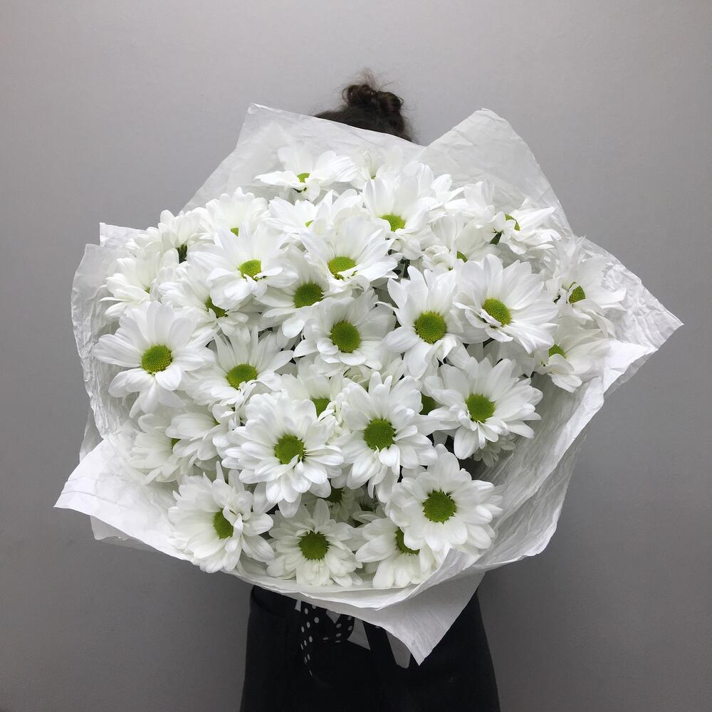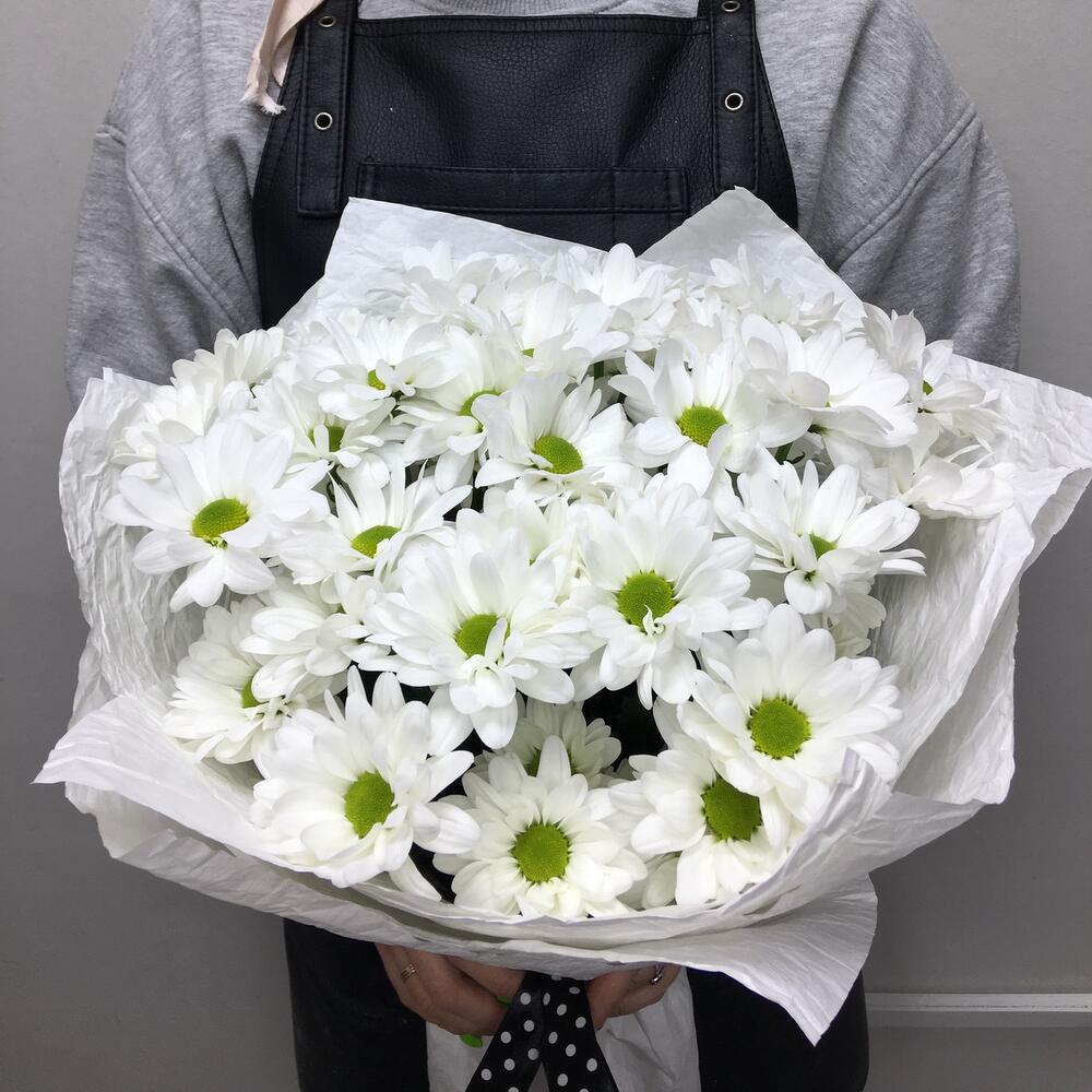 Лента атласная – 1 шт. Хризантема бакарди белая кустовая – 7 шт.