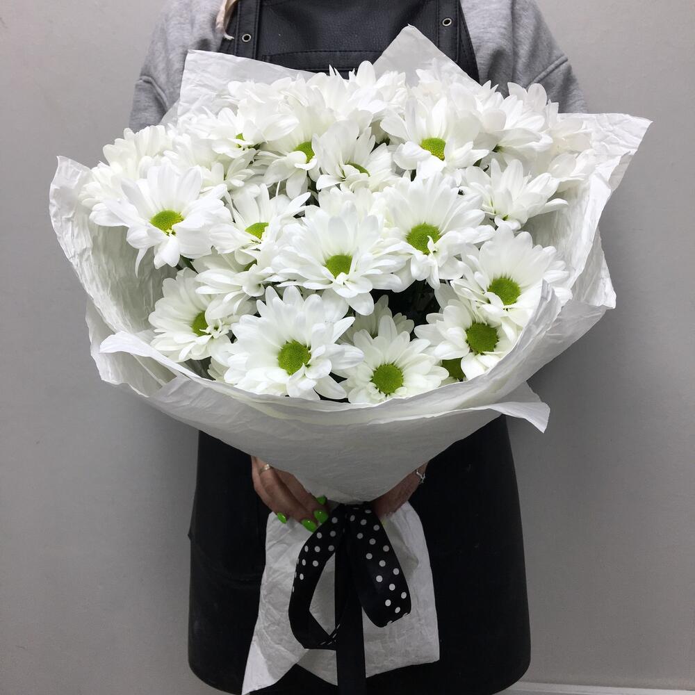 Лента атласная - 1 шт. Хризантема бакарди белая кустовая - 7 шт.