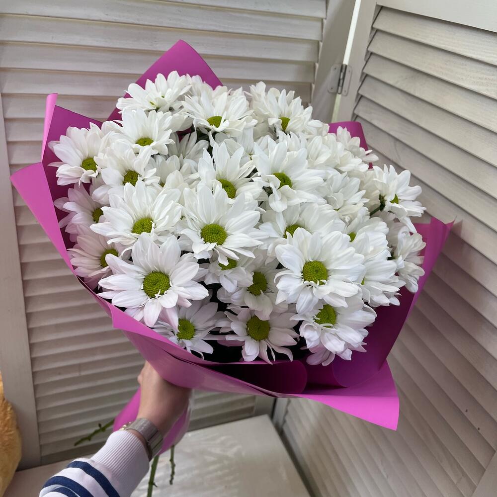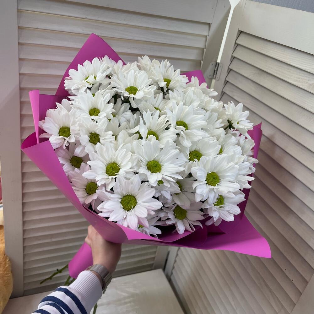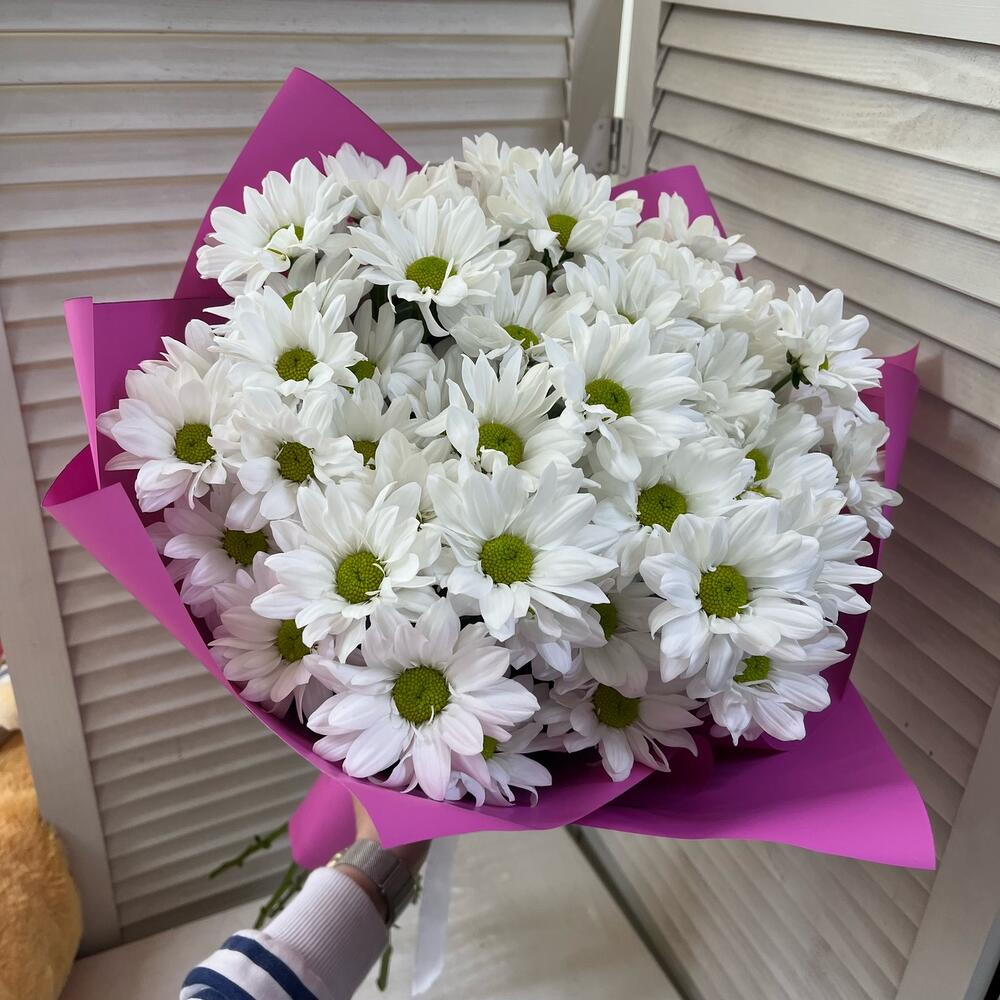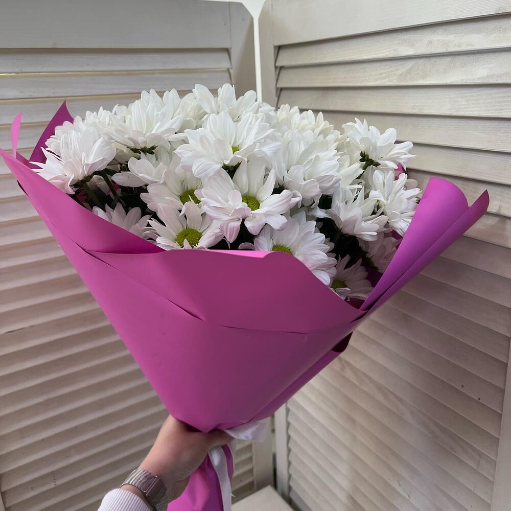 Упаковка – 1 шт. Лента атласная – 1 шт. хризантемы кустовые – 9 шт.