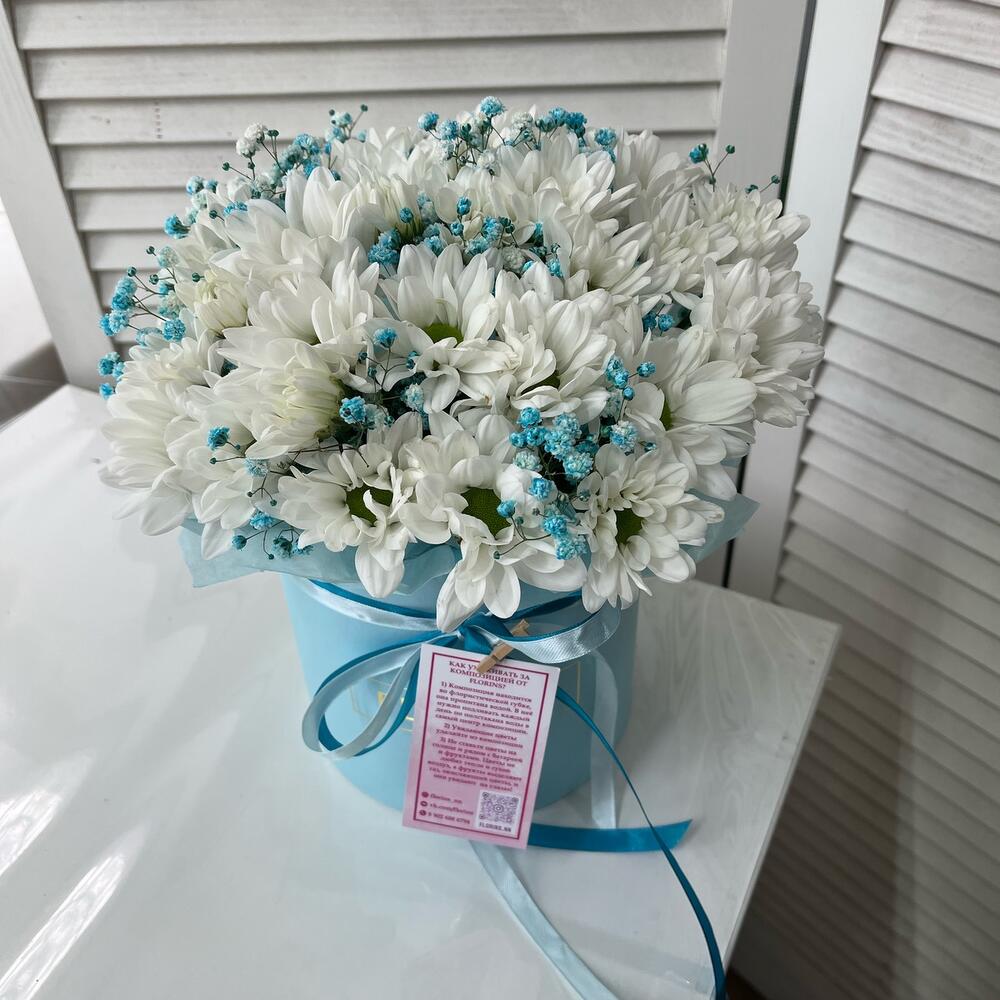 Хризантемы с гипсофилой в коробочке. Рекомендацию по уходу прикрепим 😊