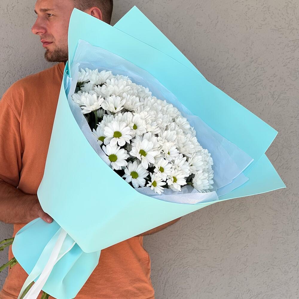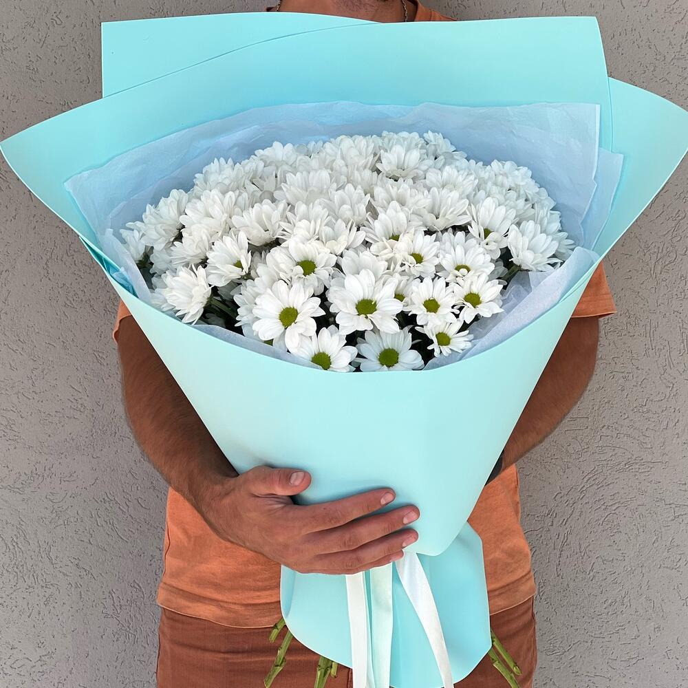 Букет-гигант из белых ромашек непременно вызовет волну восторга и произведёт впечатление на своего получателя. Пожалуй, самый практичный вариант букета в данном ценовом сегменте. За минимальную цену Вы получаете максимальный объём, а так же эти ромашки отличаются потрясающей стойкостью и очень долго сохраняются свежими и красивымиТакой цветок как хризантема отличается огромным богатством сортов, расцветок и разновидностей, а еще ко всему прочему хризантема славится своей невероятной стойкостью. Если Вы дарите букет из хризантем, то можете быть весьма уверены, что он простоит гораздо дольше, чем , например, букет из роз.Хризантеме не так страшен холод или жара.При всем при этом хризантема обладает своей неповторимой красотой и шармом. Ее можно подарить на День матери, День Рождения, юбилей, на свадьбу или на свидание. При заказе Вы можете оставить послание адресату. Открытка совершенно бесплатно ☺️