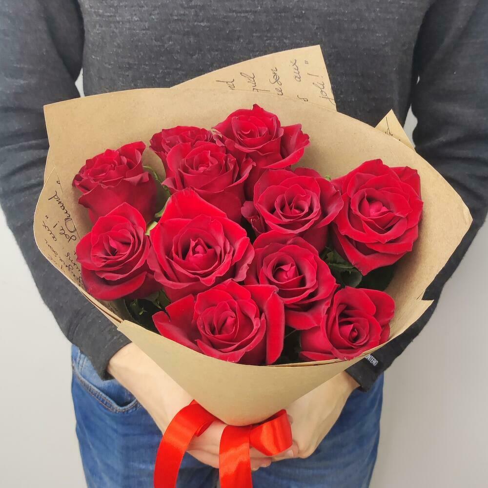 Лента атласная - 1 шт. Красная роза - 11 шт. Крафтовая упаковка - 1 шт.