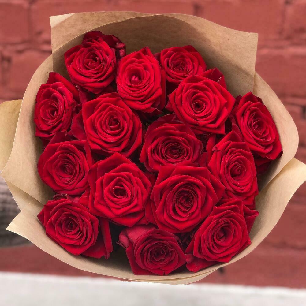Лента атласная - 1 шт. Крафтовая упаковка - 1 шт. красная роза премиум - 15 шт.
