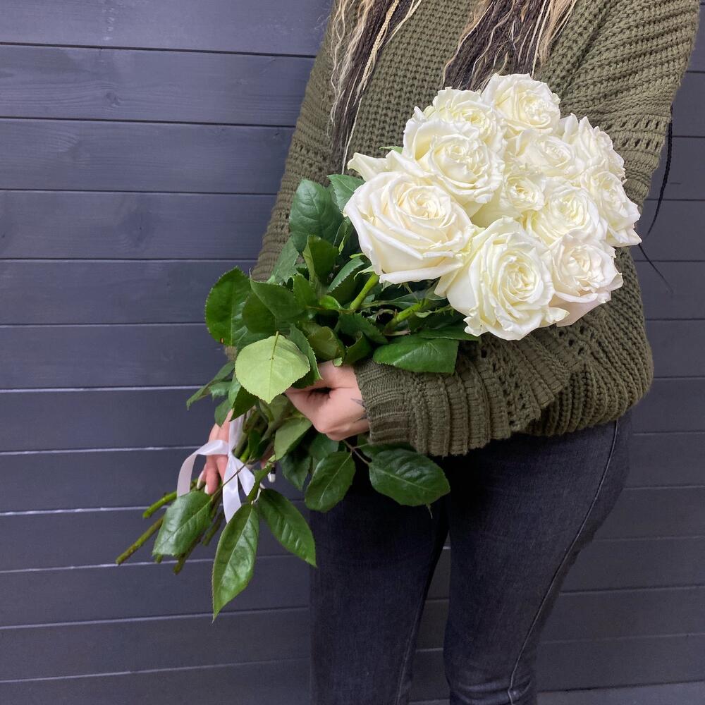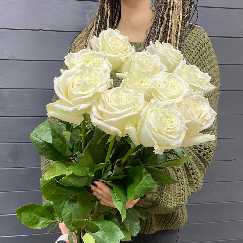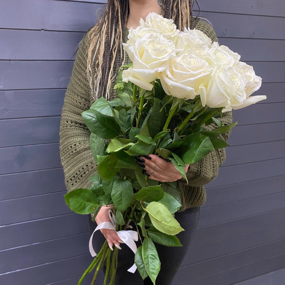 Монобукет из белых эквадорских роз высотой 70 см под ленту