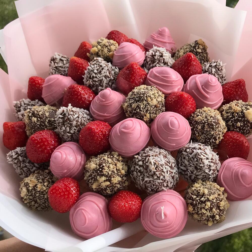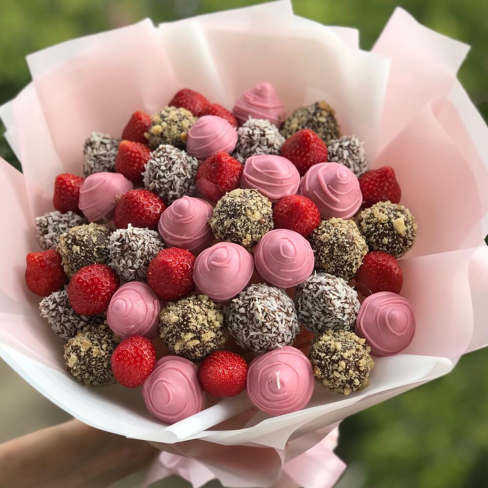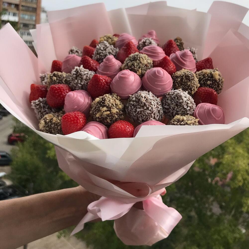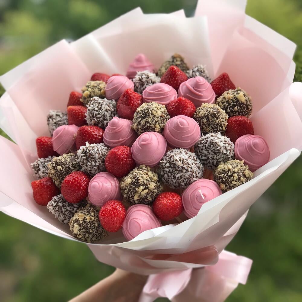 Клубника в шоколаде – 30 шт. клубника свежая – 16 шт. любовь флориста (бесплатно) – 1 шт.