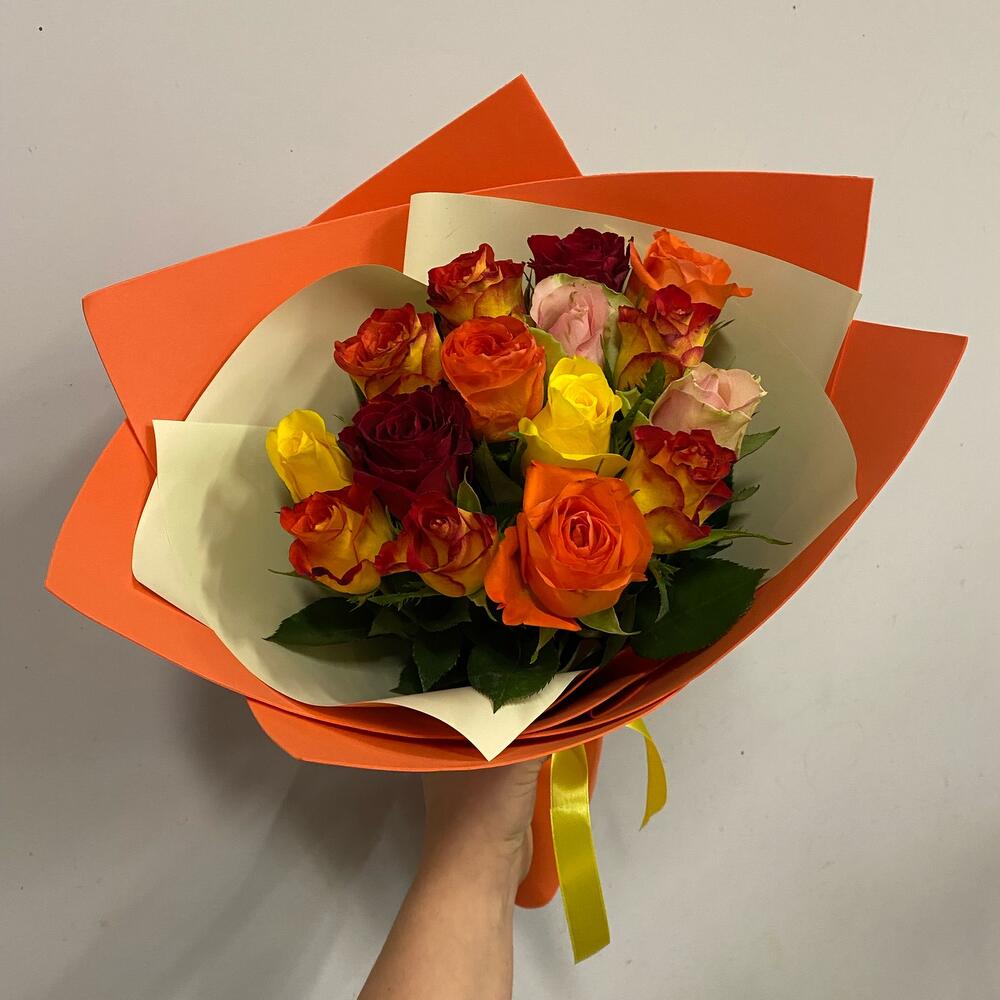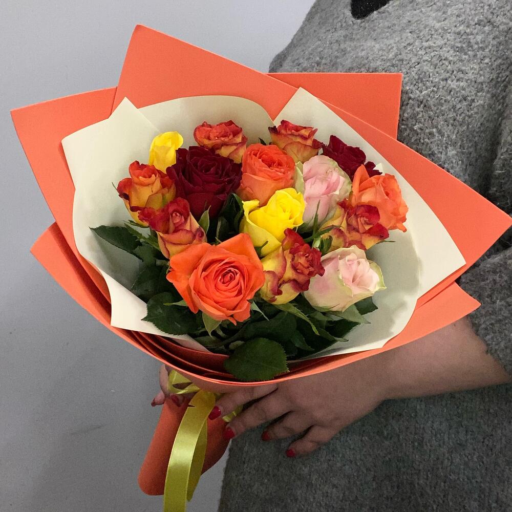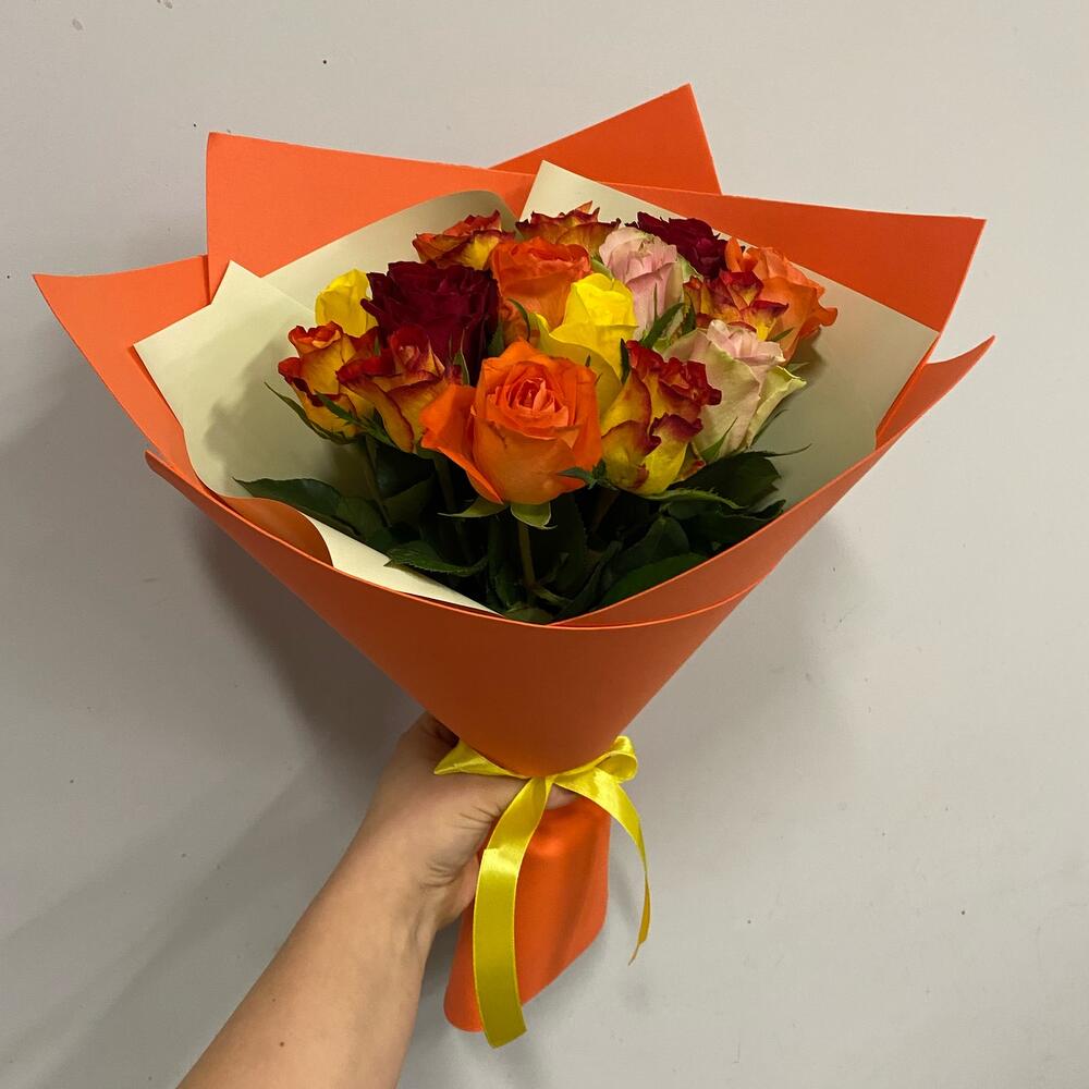 Монобукет из микса кенийских розочек 35 см в оформлении