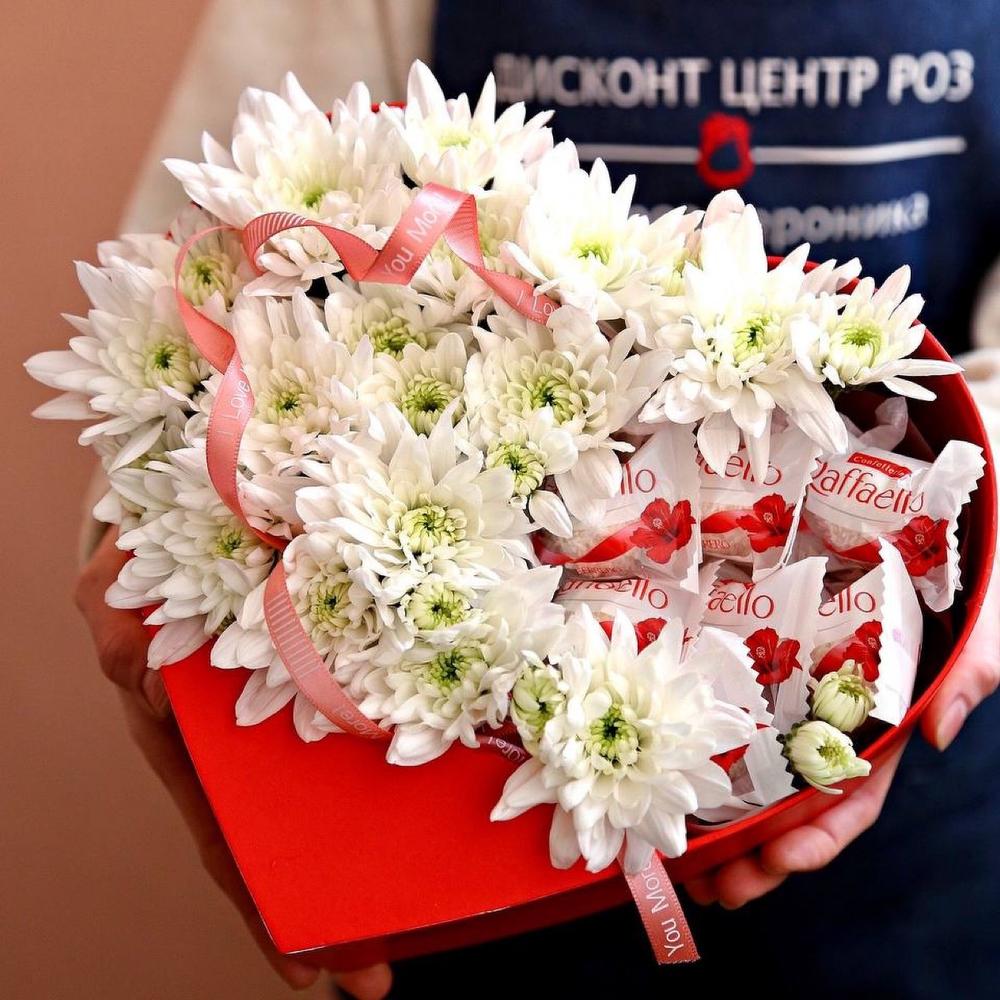 Хризантема кустовая – 3 шт. Конфеты – 7 шт.