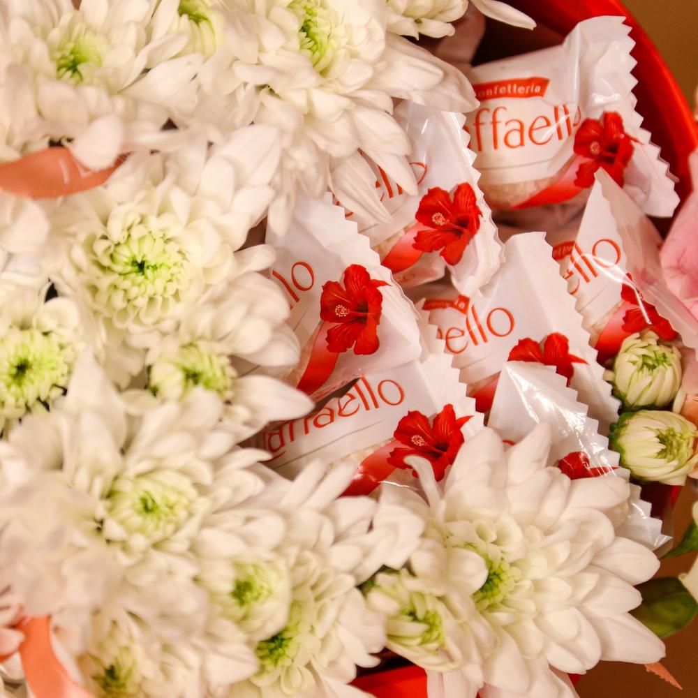Хризантема кустовая - 3 шт. Конфеты - 7 шт.