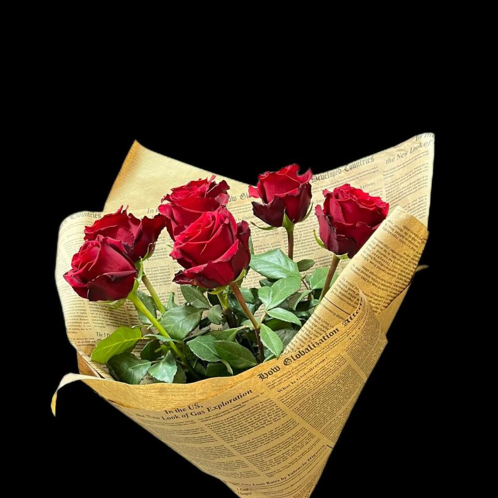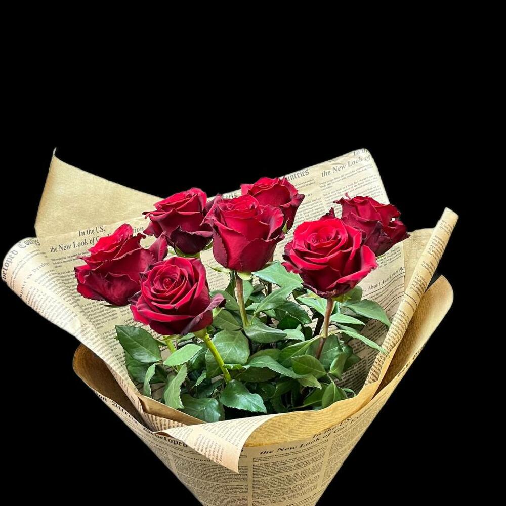 Лента – 1 шт. Красная роза эквадор – 7 шт. Крафт бумага – 2 шт.