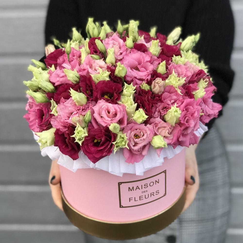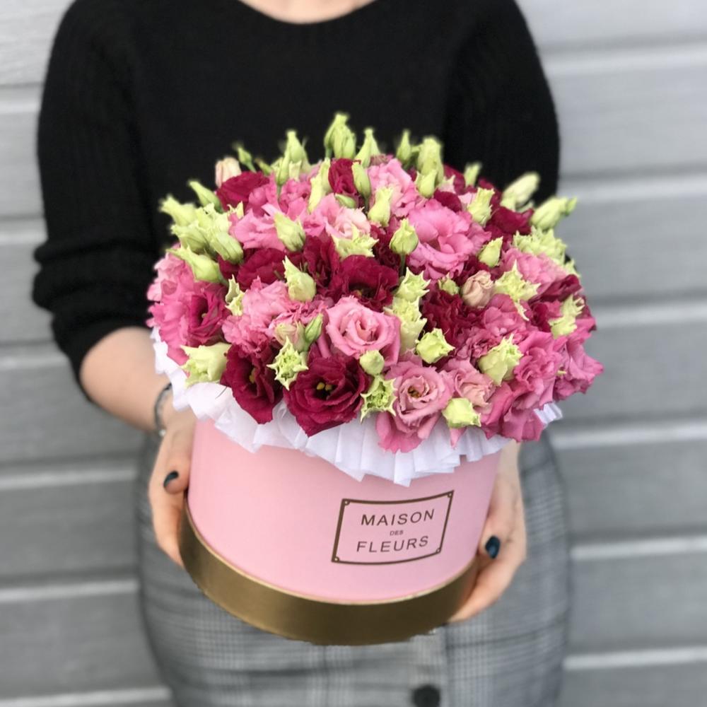 Нежнейшая композиция из микса эустом изумительных оттенков в стильной шляпной коробке. Композиция, которая способна порадовать и поразить своей невероятной нежностью. Эта композиция точно станет запоминающимся цветочным комплиментом.Радуйте близких вместе с нами