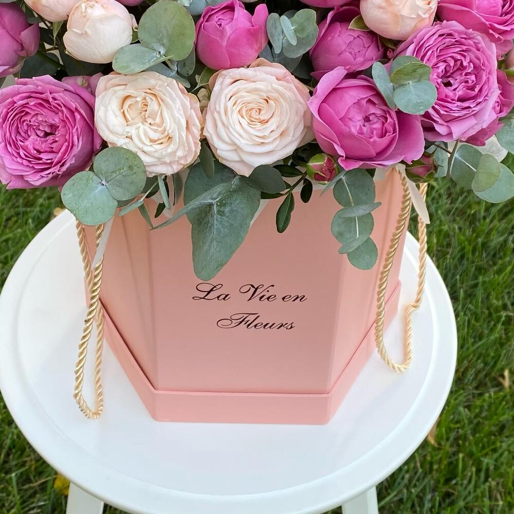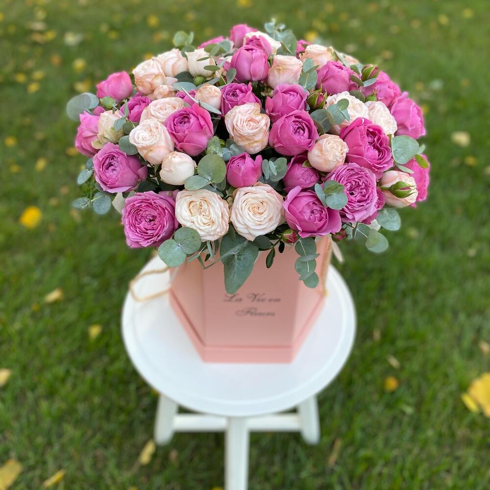 Роскошная коробка пионовидных роз , покорит своим ароматом и красотой даже самую избалованную девушку 😉Каждый бутончик как пион , распускает свои лепестки , и наполняет комнату ароматом 🌿 Элегантно,престижно и роскошно👑