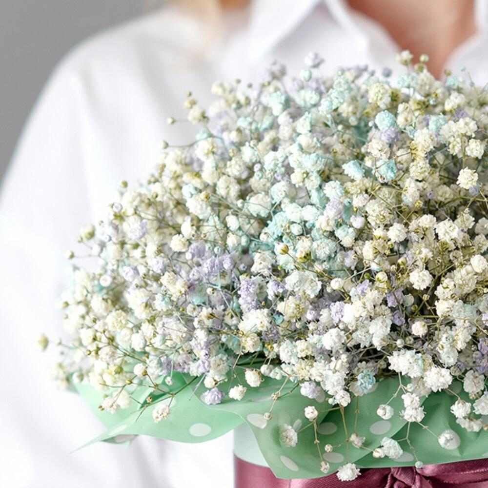 Гипсофила – 5 шт. Лента – 2 шт. Оазис – 1 шт. Шляпная коробка – 1 шт. пленка декоративная – 1 шт.