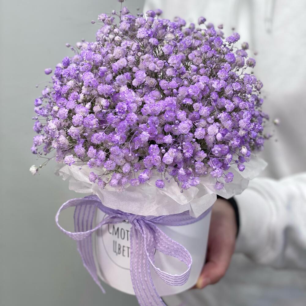 Гипсофила - 3 шт. Тишью - 1 шт. Коробка шляпная - 1 шт.